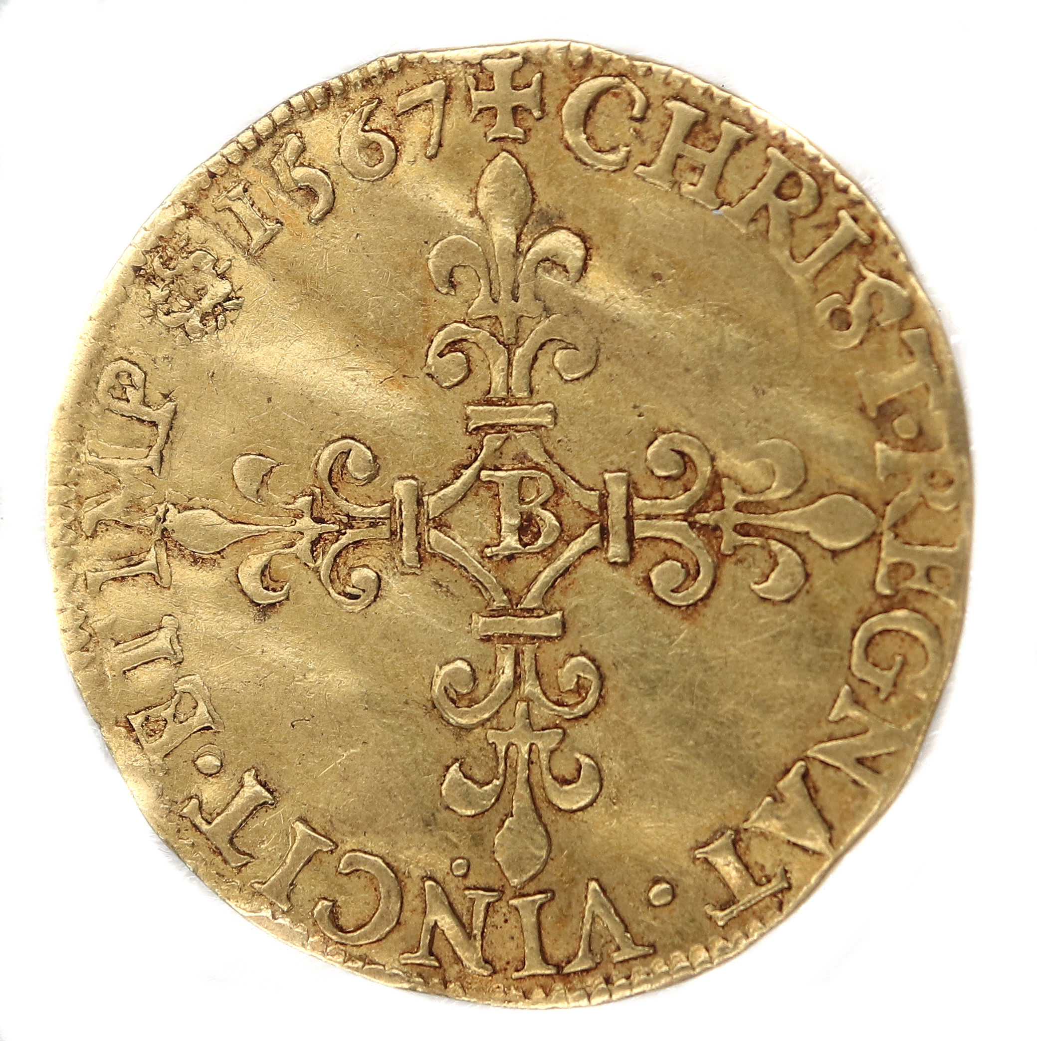 de la croix fleurdelisée) Point secret : 15 éme (au revers) Millésime : MDLXVII Chiffre de frappe connu : 80 300 ex (avec demi ecus d'or) Indice de rareté : C |