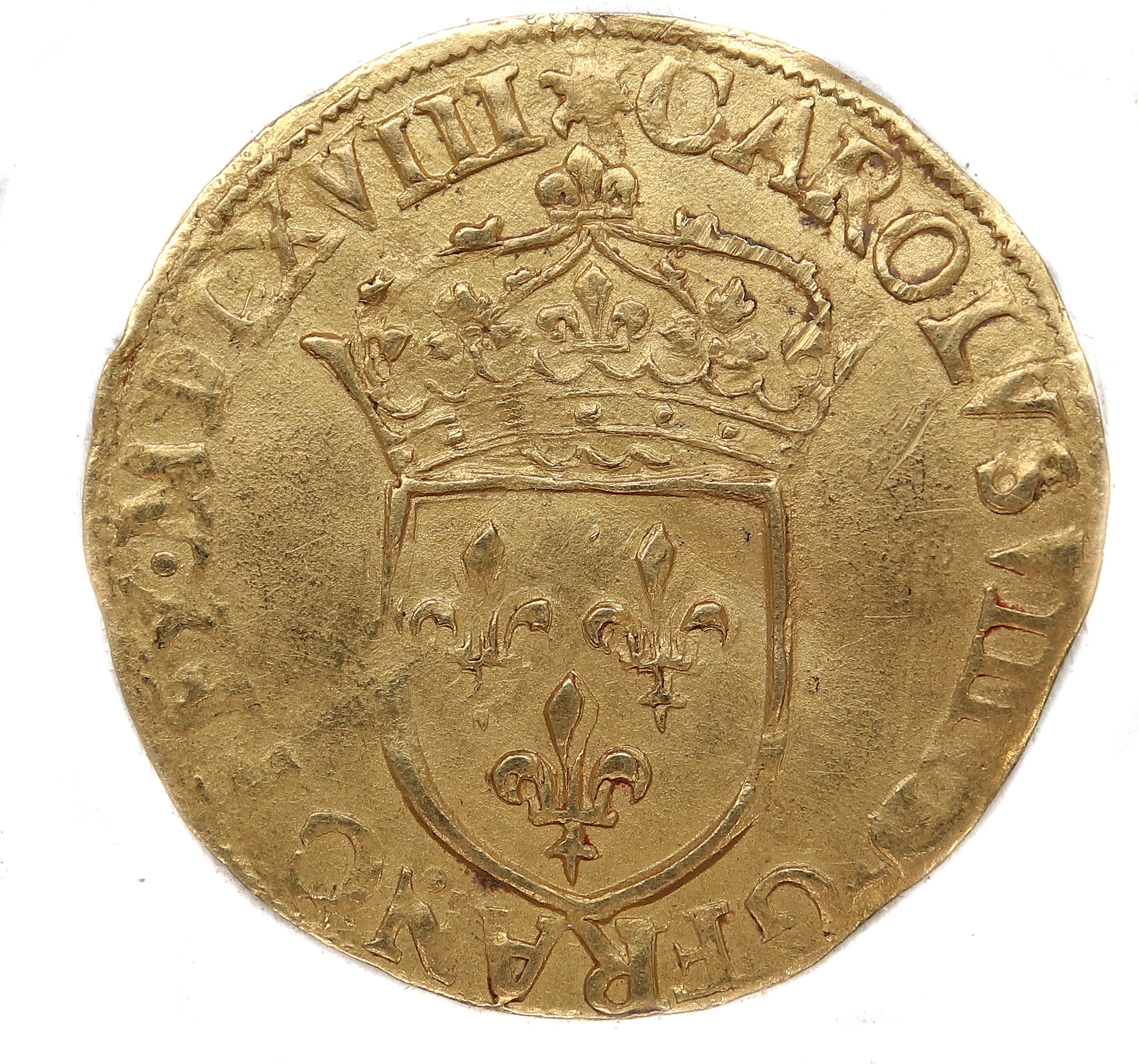 (soleil)CAROLVS.VIIII.D(dif)G.FRANC.REX