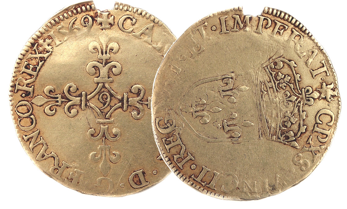 de la croix fleurdelisée) Point secret : NON Millésime : 1569 Chiffre de frappe connu : 2 910 (avec 1/2 Ecus) Indice