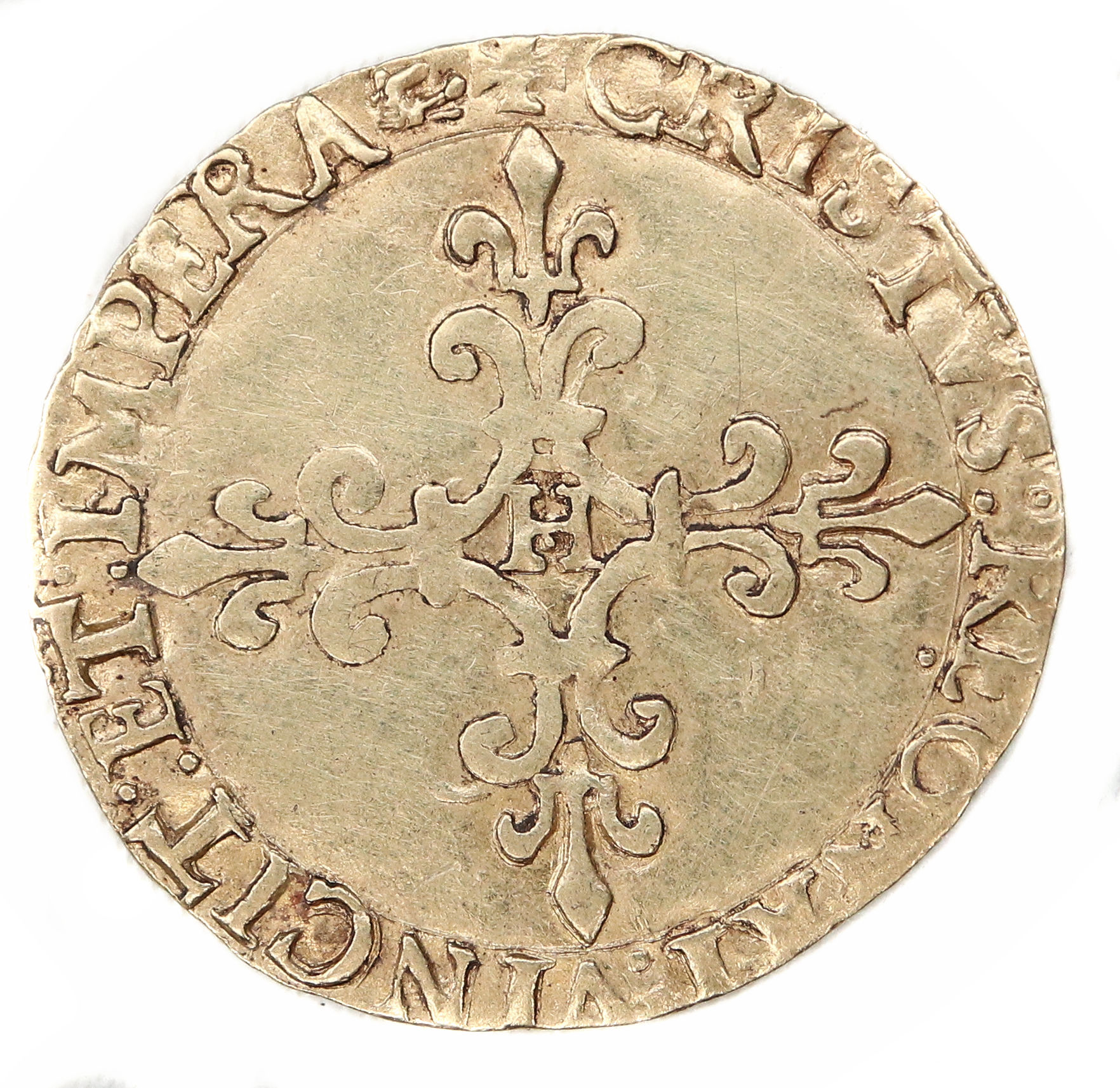 de la croix fleurdelisée) Point secret : OUI (9éme au revers) Millésime : 1565 Chiffre de frappe connu : 15 616 ex (avec 1/2 Ecus) Indice de