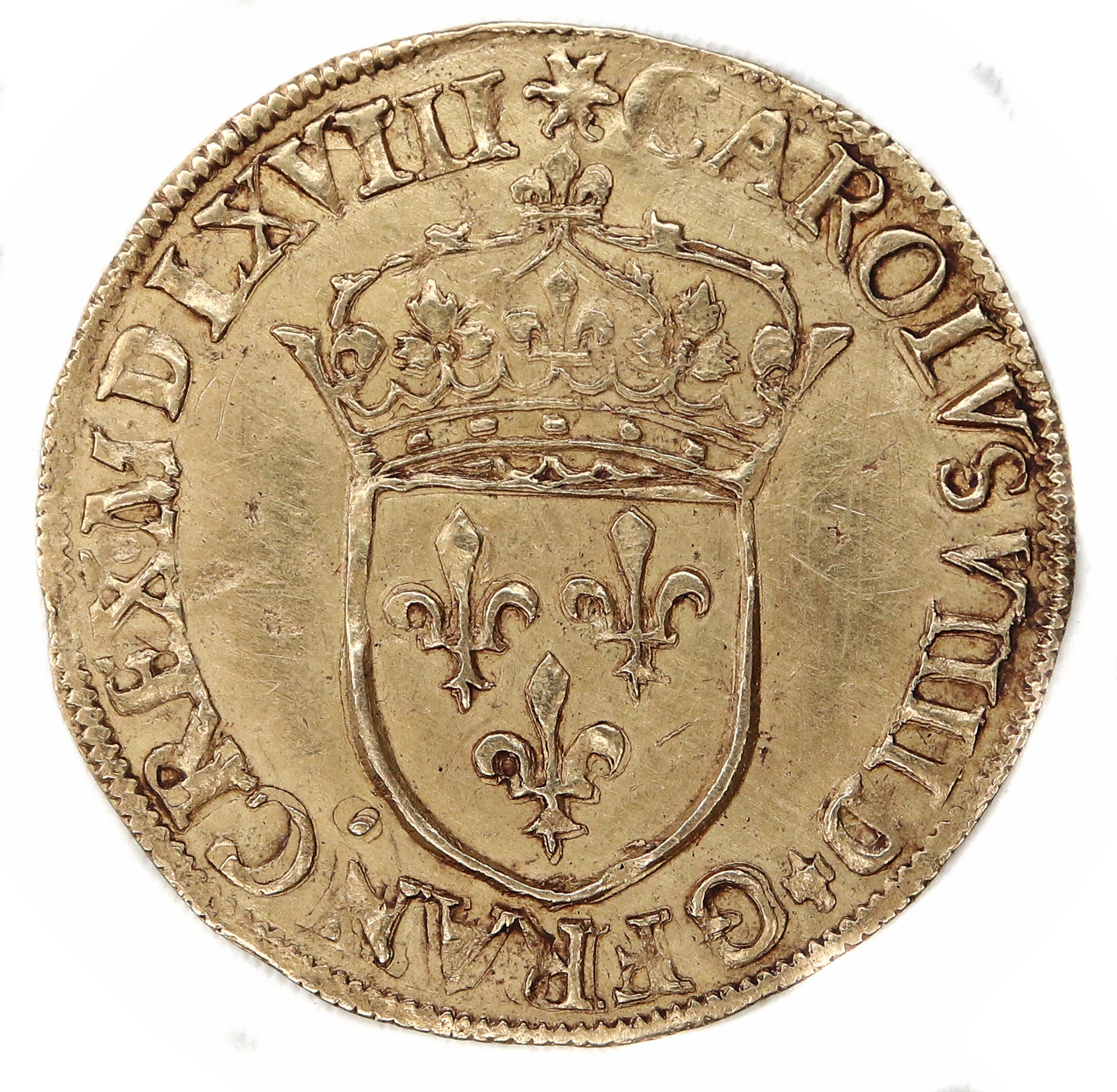 de la croix fleurdelisée) Point secret : 17éme (au droit et au revers) Millésime : MDLXVIII Chiffre de frappe connu : 84 450 ex (avec 1/2 Ecus) Indice de rareté : C |