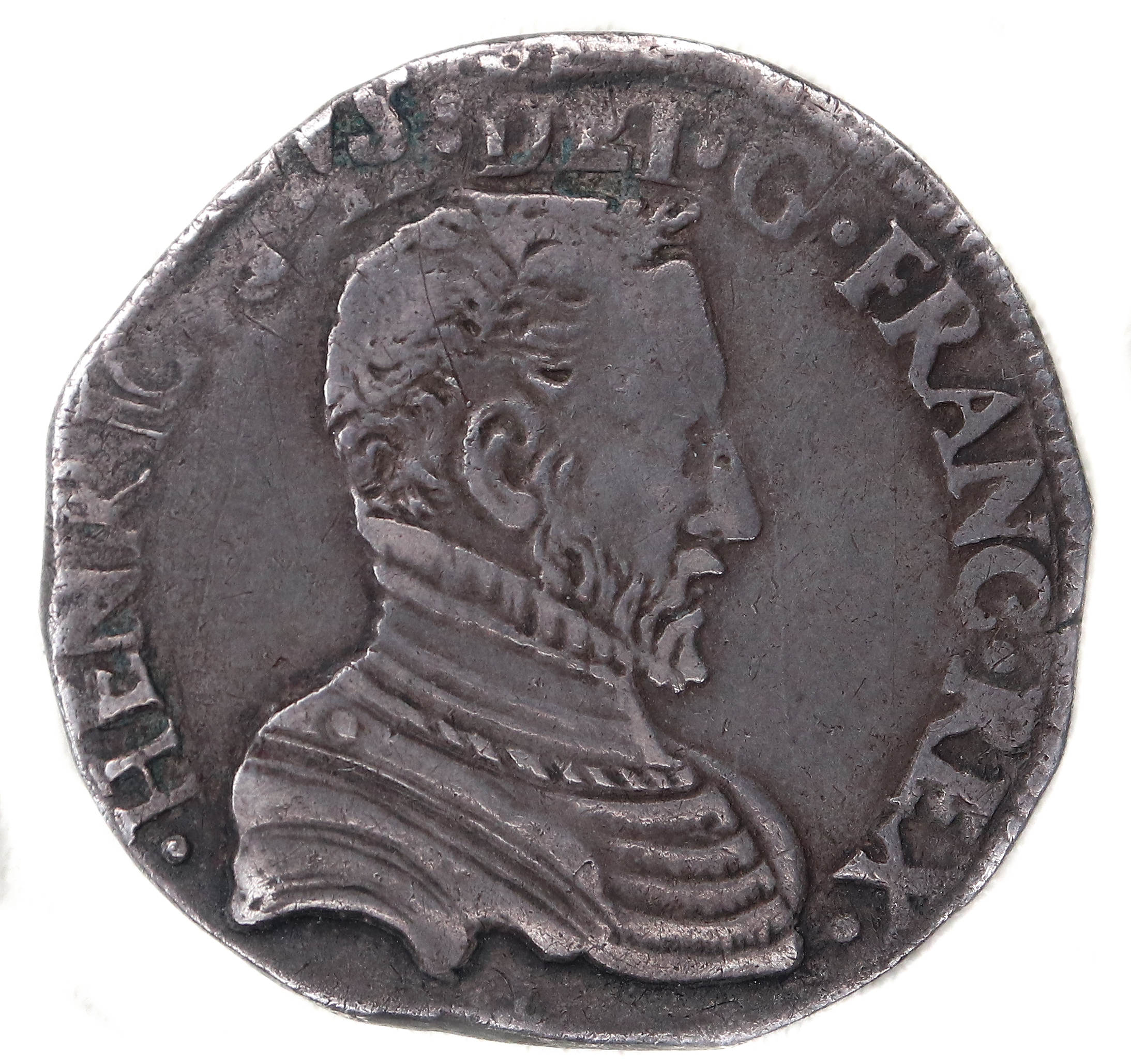 HENRICVS.II.DEI.G.FRANC.REX. HENRI, par la grâce de Dieu, roi des Francs Buste cuirassé du roi tête nue à droite |