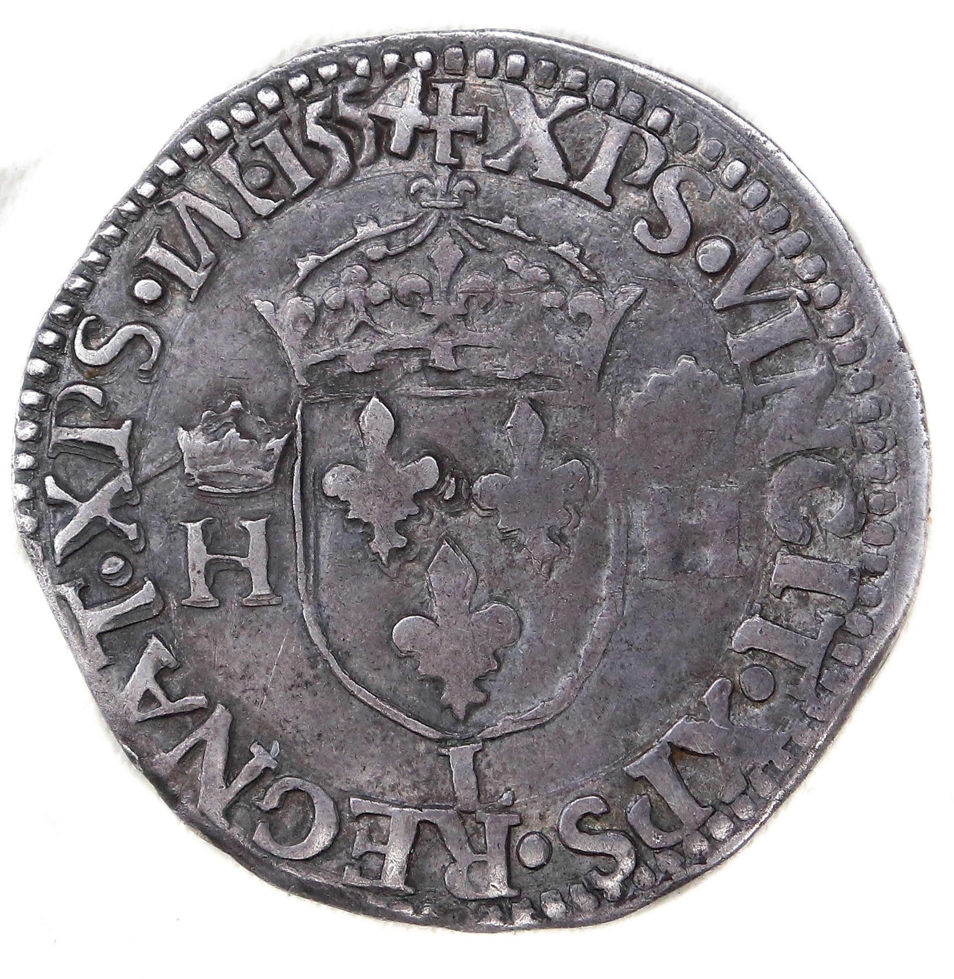 Lettre d'atelier : L (au revers sous l'écu) Point secret : Non Millésime : 1554 Chiffre de frappe connu : 65 178 (avec testons) Indice de rareté : R2 |
