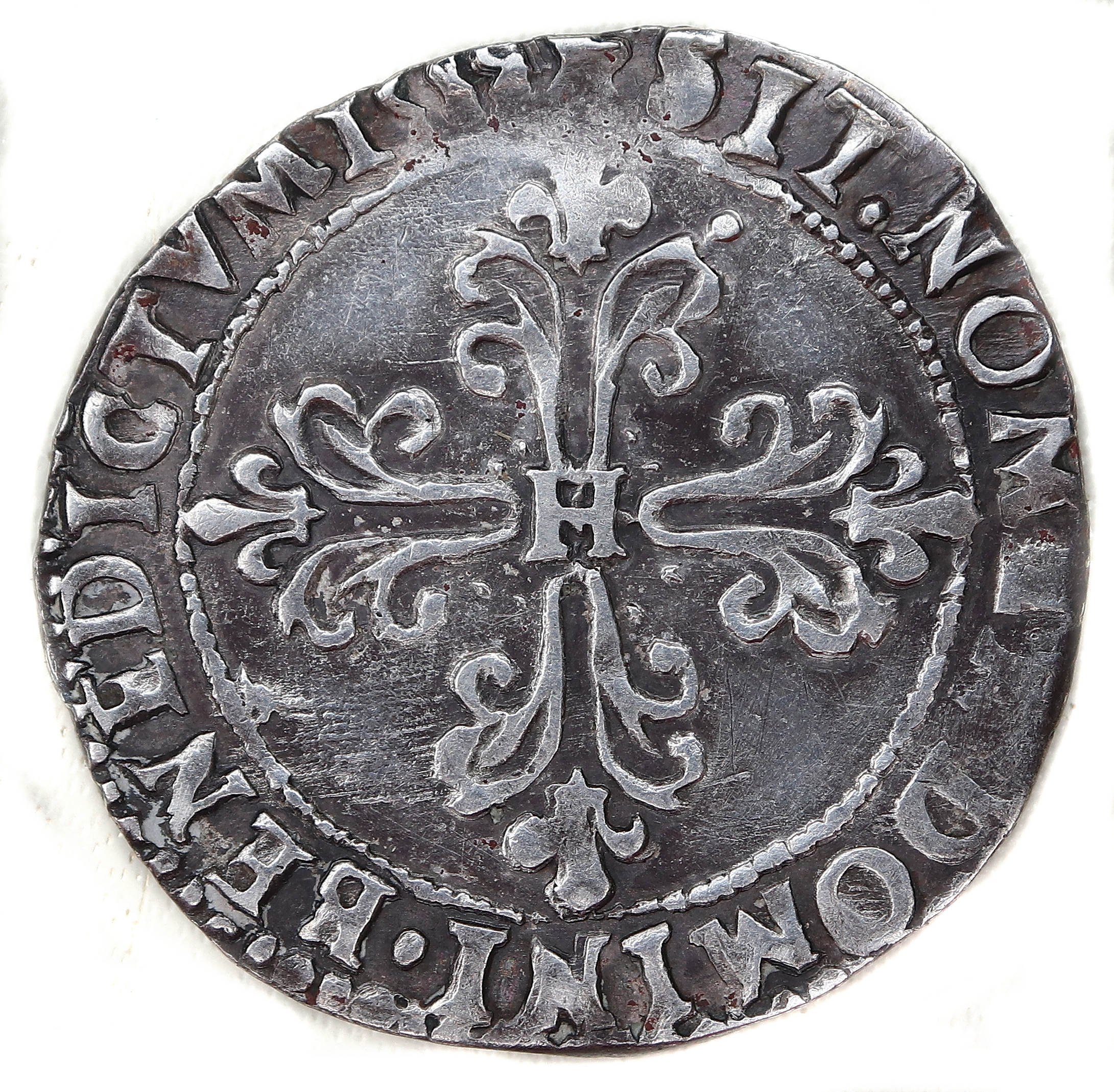 droit) Point secret : Non Millésime : 1589 Chiffre de frappe connu : NC Indice de rareté : R4 |