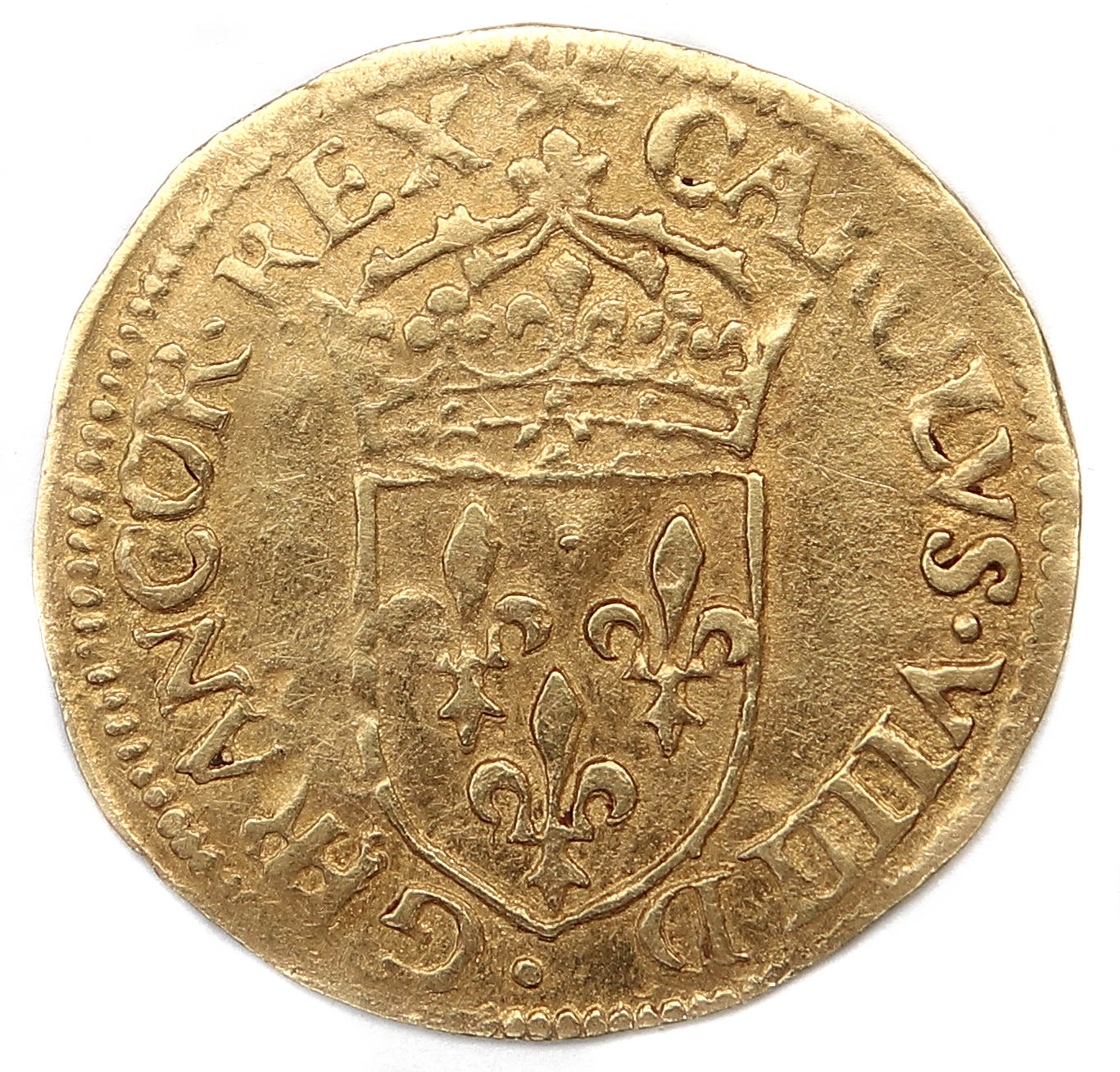de la croix fleurdelisée) Point secret : 15 éme (au droit) Millésime : 1571 Chiffre de frappe connu : 35 100 ex (avec Ecus) Indice de rareté : R5 |
