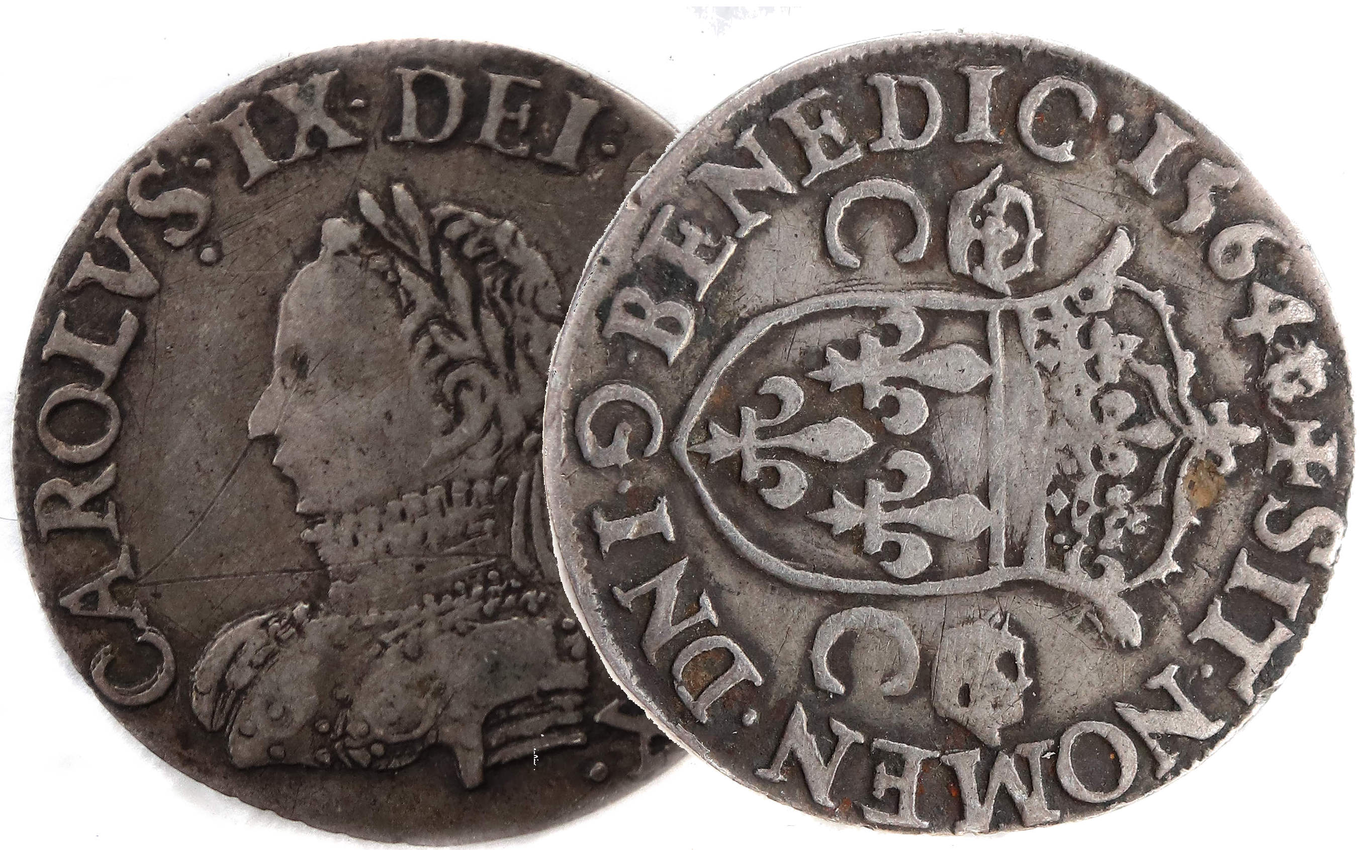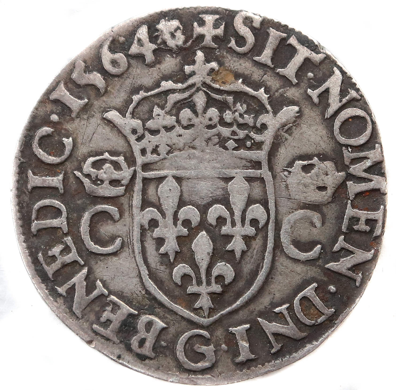pointe de l'écu) Point secret : 7éme (au droit) Millésime : 1564 Chiffre de frappe connu : 27 718 ex. (avec testons) |