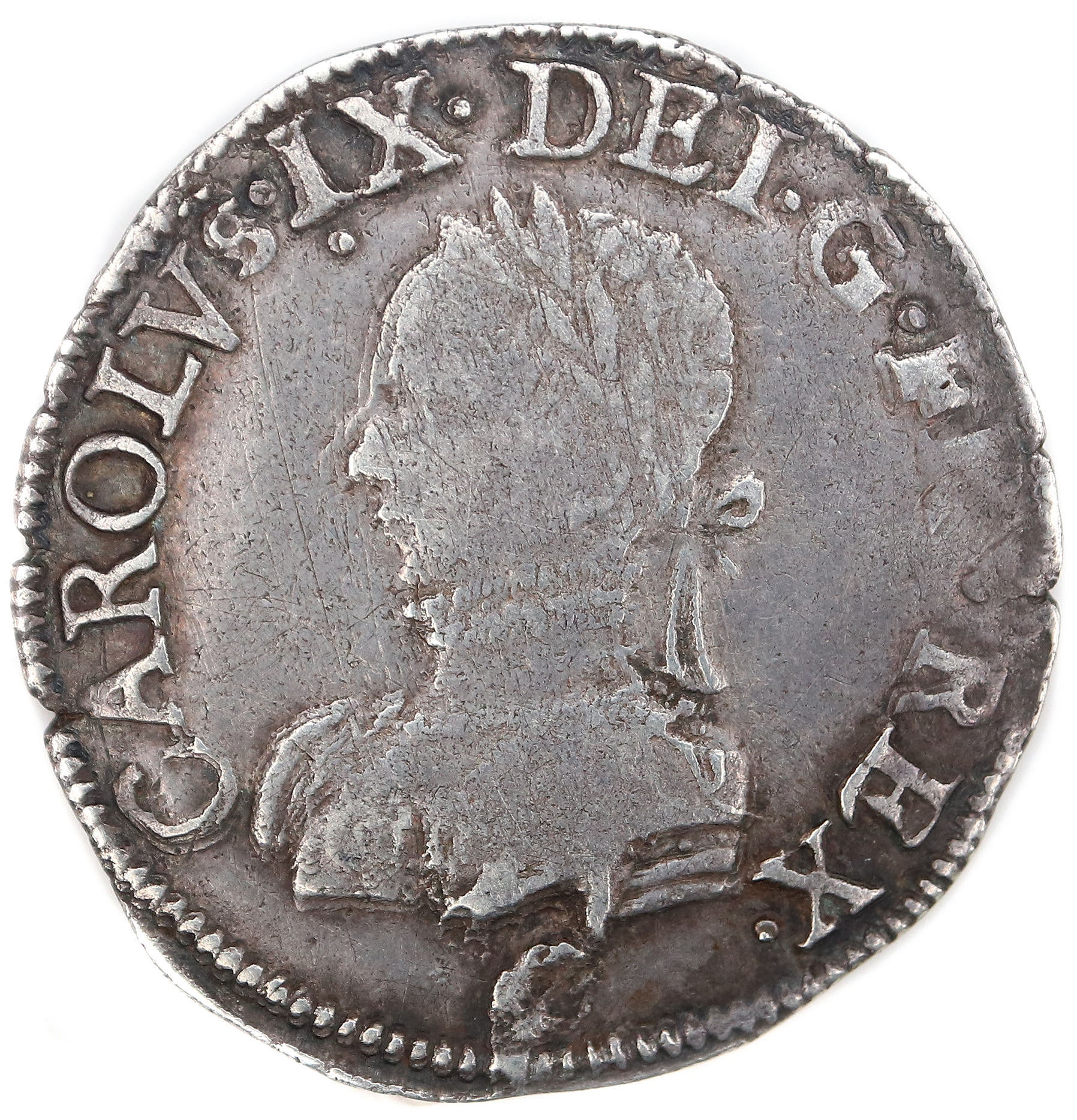 .CAROLVS.IX..DEI.G.FRA.REX. G Charles VIIII par la grâce de Dieu roi des Francs Buste du roi, à gauche, cuirassé