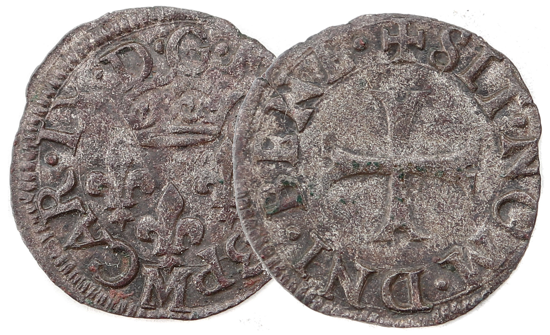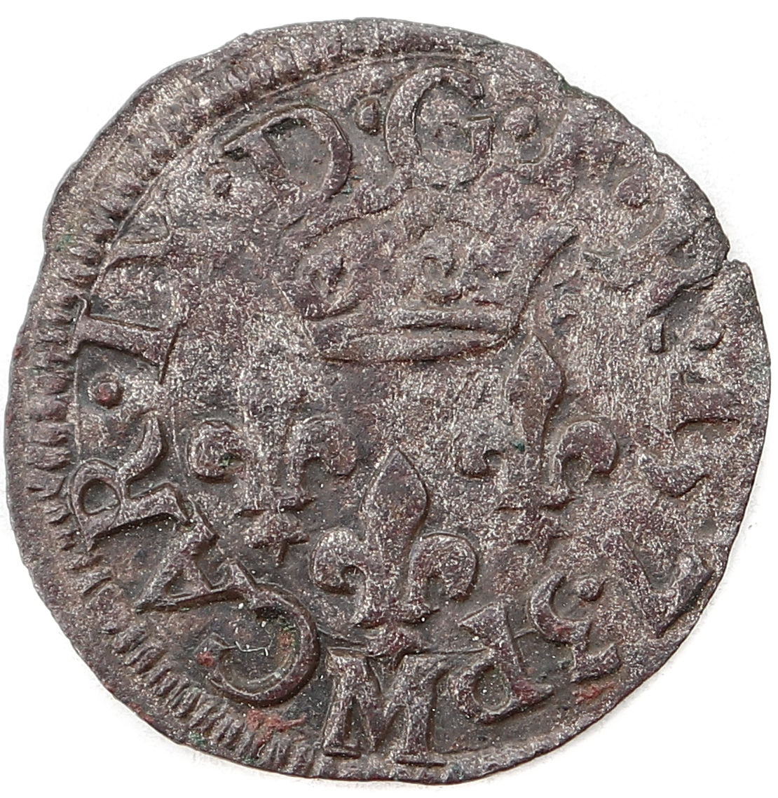 CAR.IX.D.G.F.R.1573P M Charles VIIII par la grâce de Dieu roi des Francs Trois lis posés 2 et 1 sous une