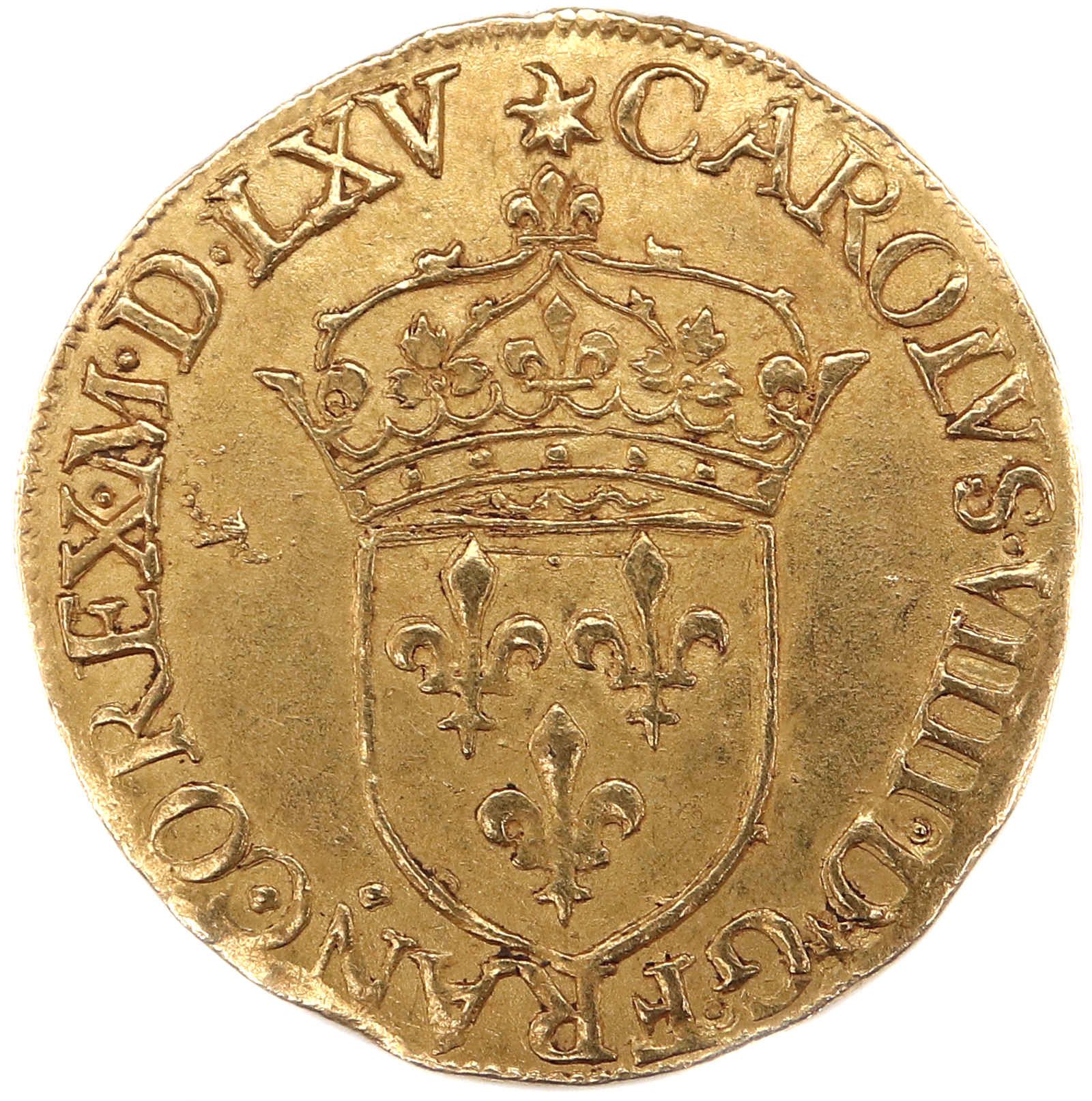 VIIII.D.G.FRANCO REX .M.D.LXV Charles VIIII par la grâce de Dieu roi des Francs Ecu de France couronné d'un