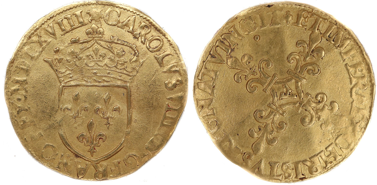MDLXVIII Charles VIIII par la grâce de Dieu roi des Francs Ecu