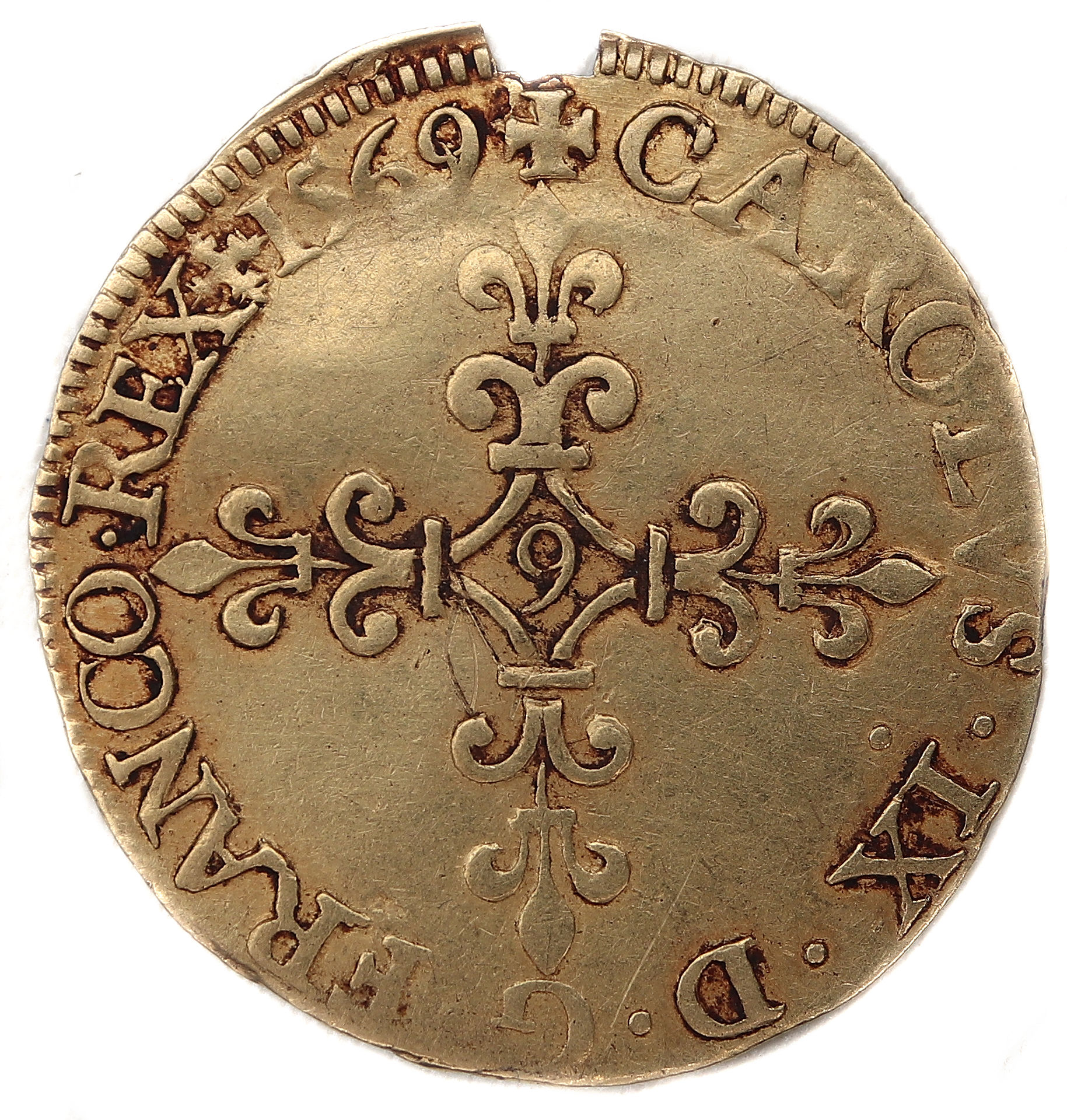 de la croix fleurdelisée) Point secret : NON Millésime : 1569 Chiffre de frappe connu : 2 910 (avec 1/2 Ecus) Indice