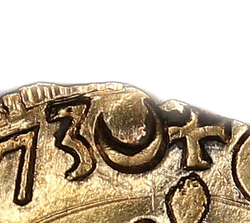d'atelier : Barthélémy JUGE (1573-1574) : CROISSANT Graveur : Jean BAYARD (1551-1589) : SOLEIL |