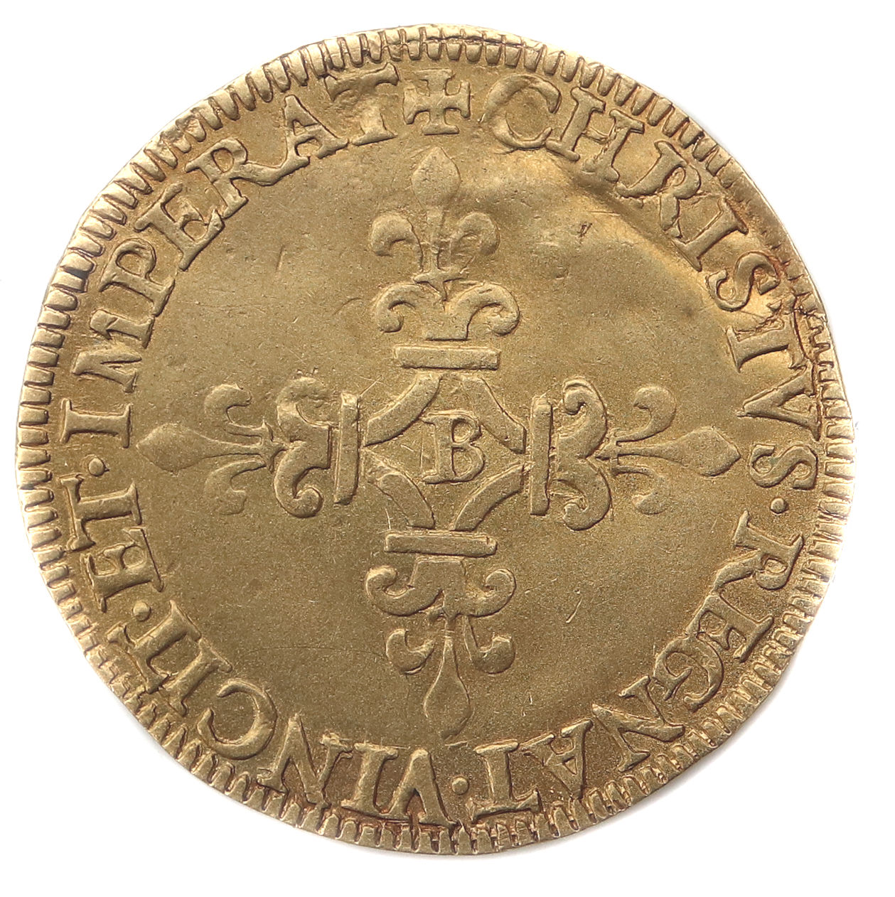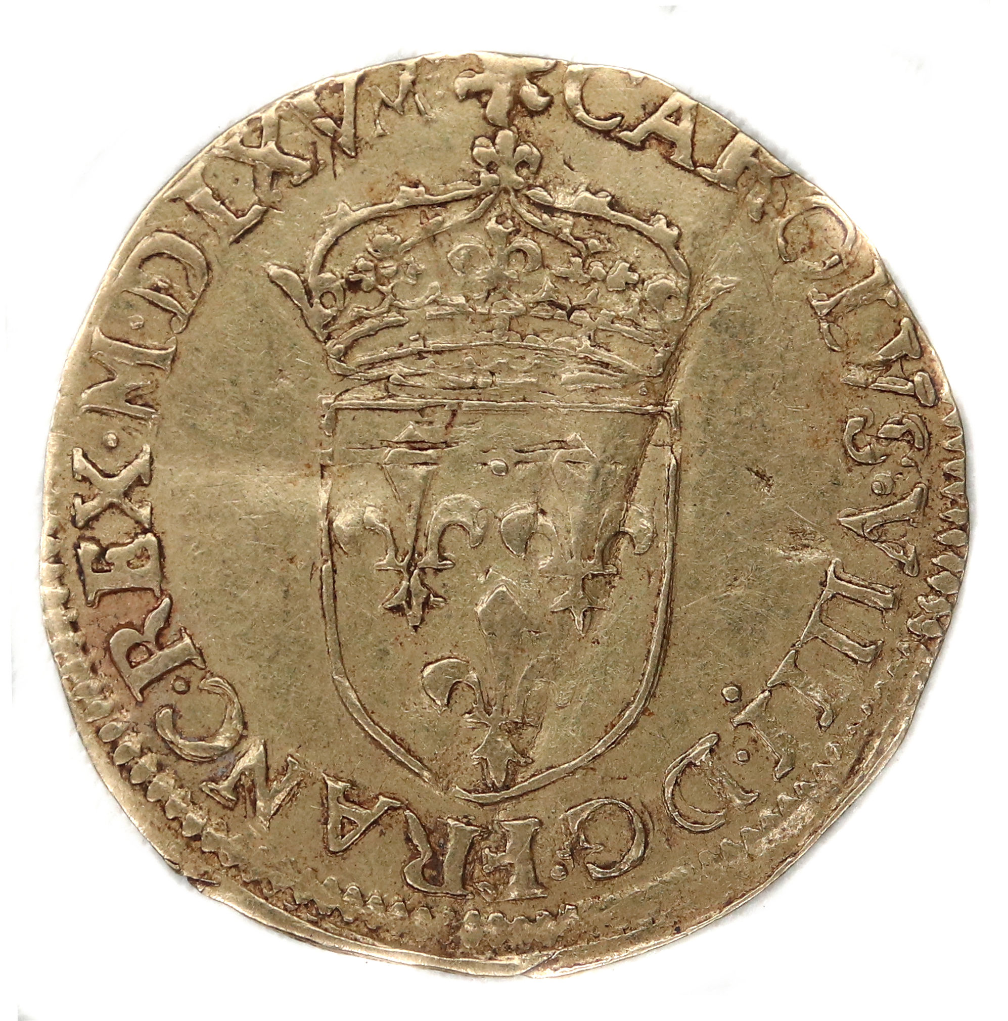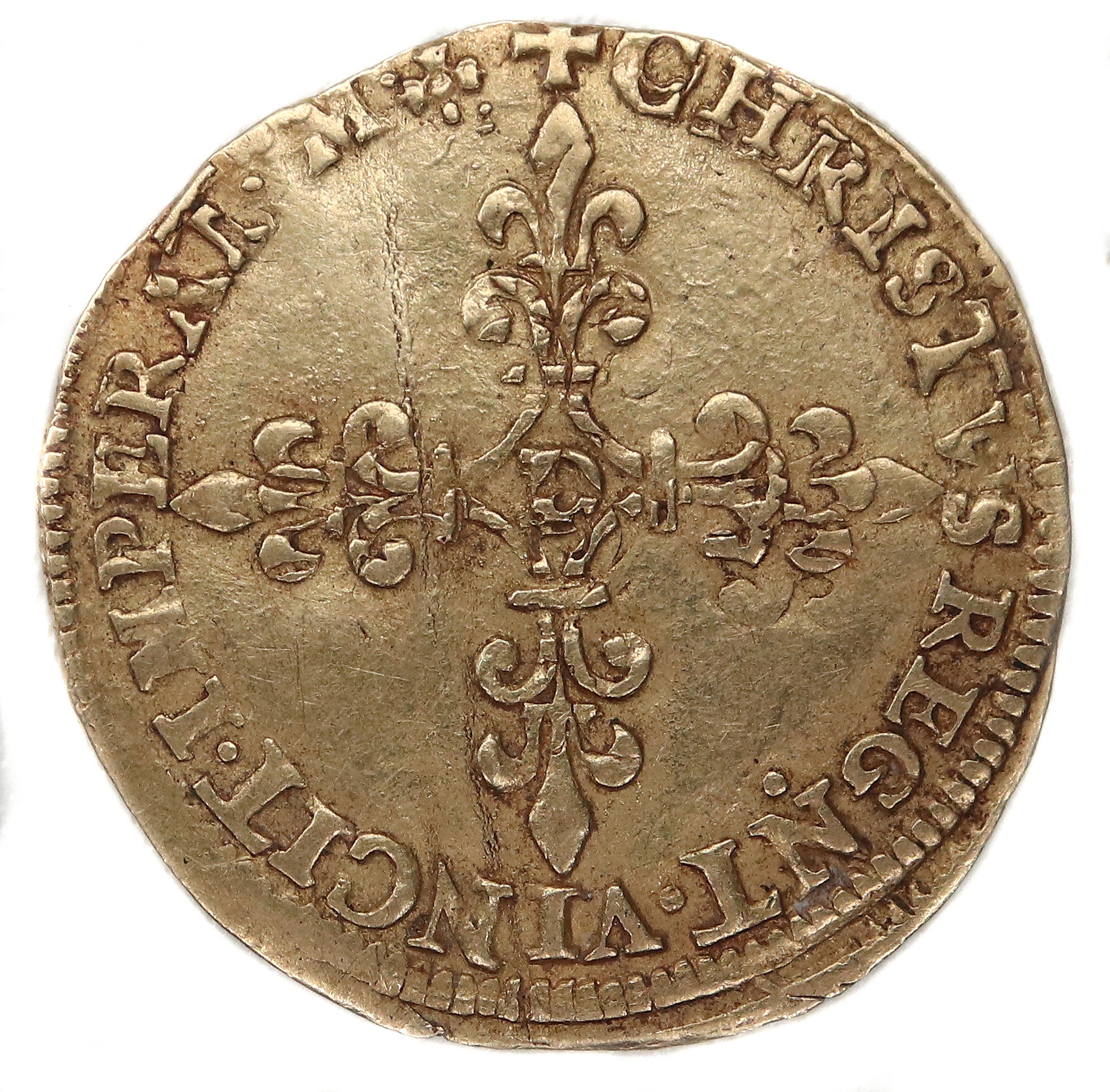 de la croix fleurdelisée) Point secret : 12éme (au droit et au revers) Millésime : MDLXV Chiffre de frappe connu : 6 730 ex .(avec demi-ecus d'or) Indi