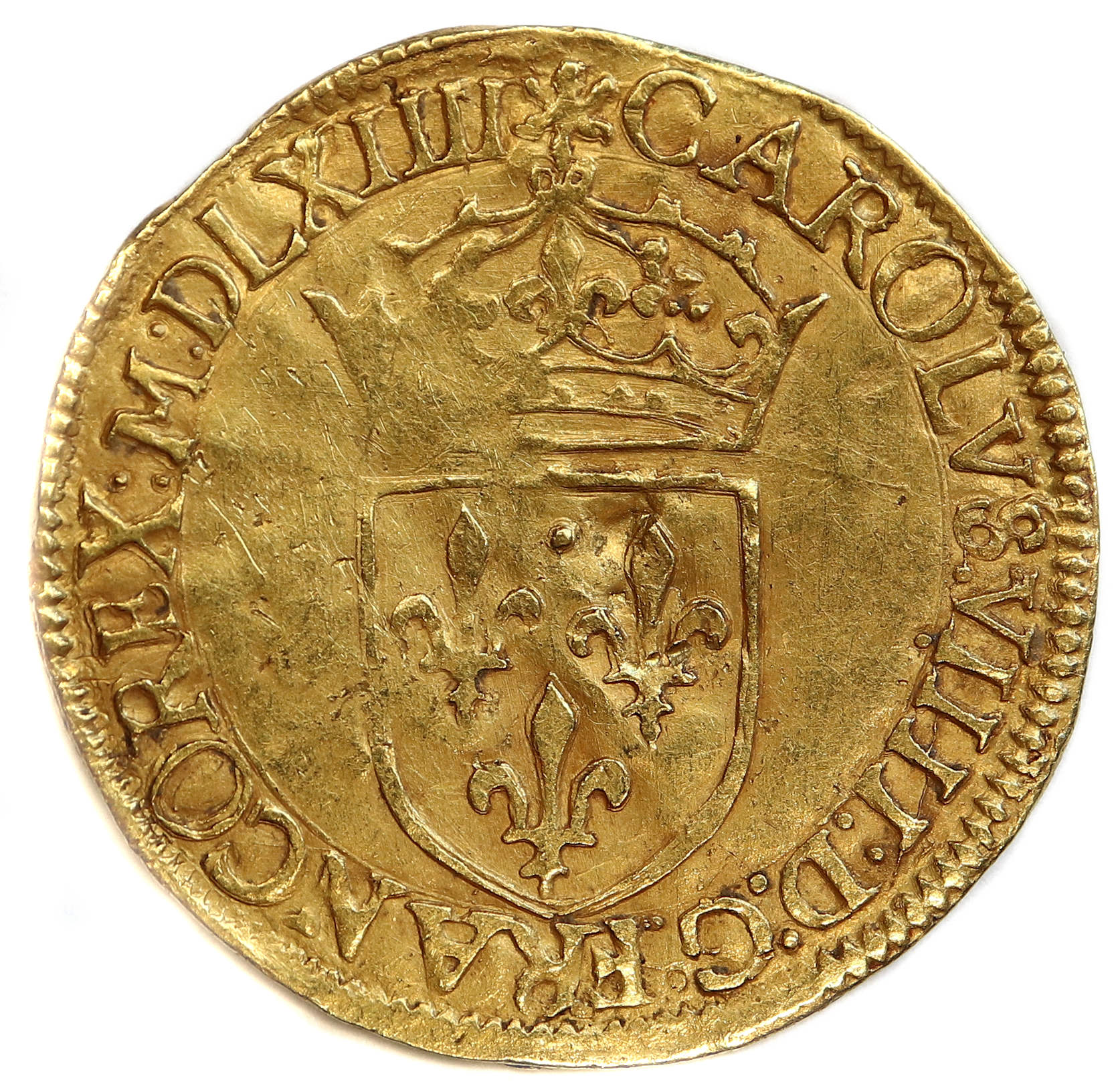 de la croix fleurdelisée) Point secret : 9éme (au droit et au revers) Millésime : MDLXIIII Chiffre de frappe connu : 12 617 ex.(avec