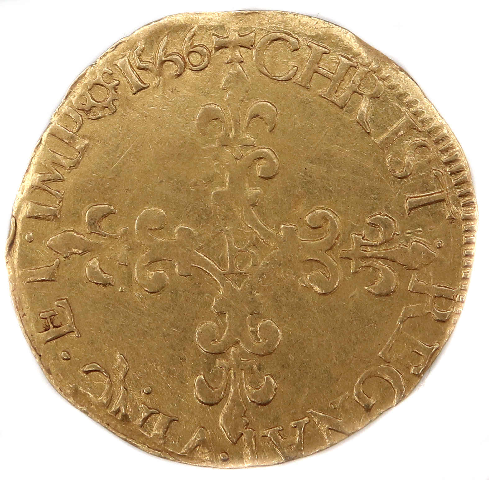 de la croix fleurdelisée) Point secret : OUI (15éme au revers) Millésime : 1566 Chiffre de frappe connu : 106 300 ex (avec