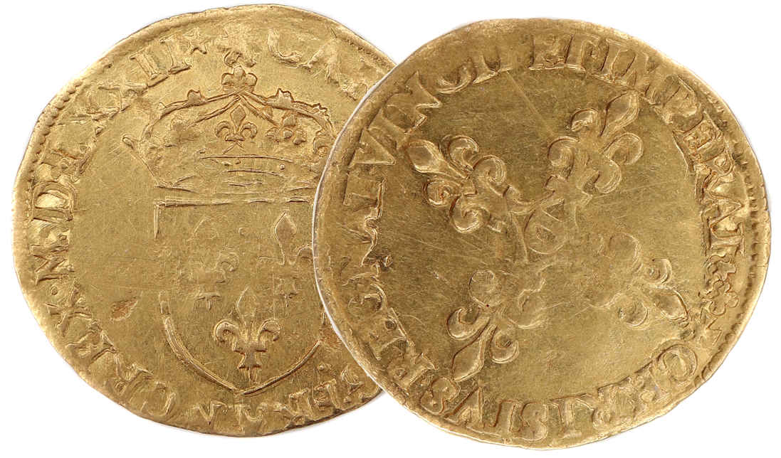 de la croix fleurdelisée) Point secret : 12éme (au droit et au revers) Millésime : 1572 Chiffre de frappe connu : 3 463 ex (avec