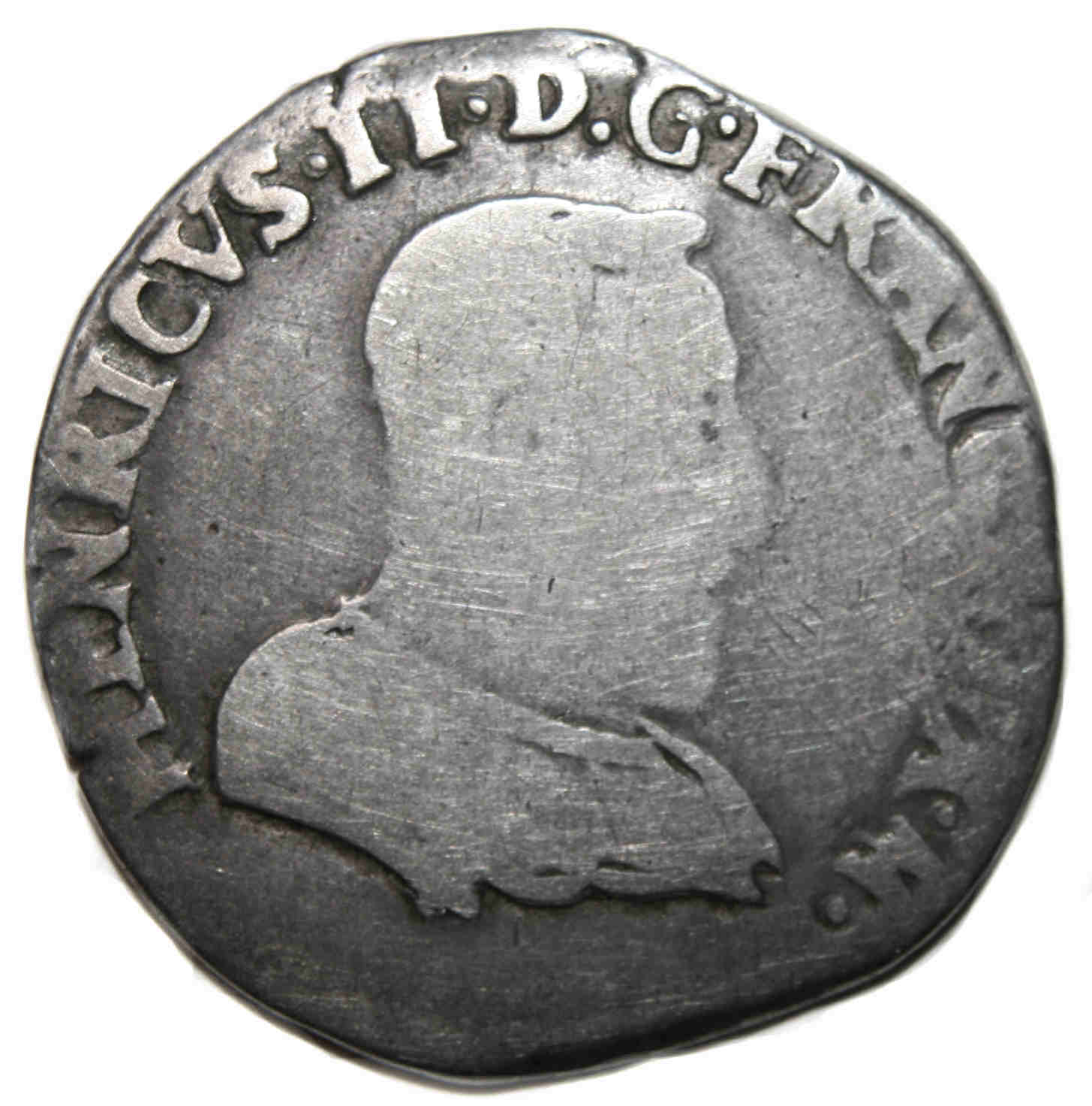 HENRICVS.II..D.G.FRANC.REX.M. Buste du roi, à droite, cuirassé