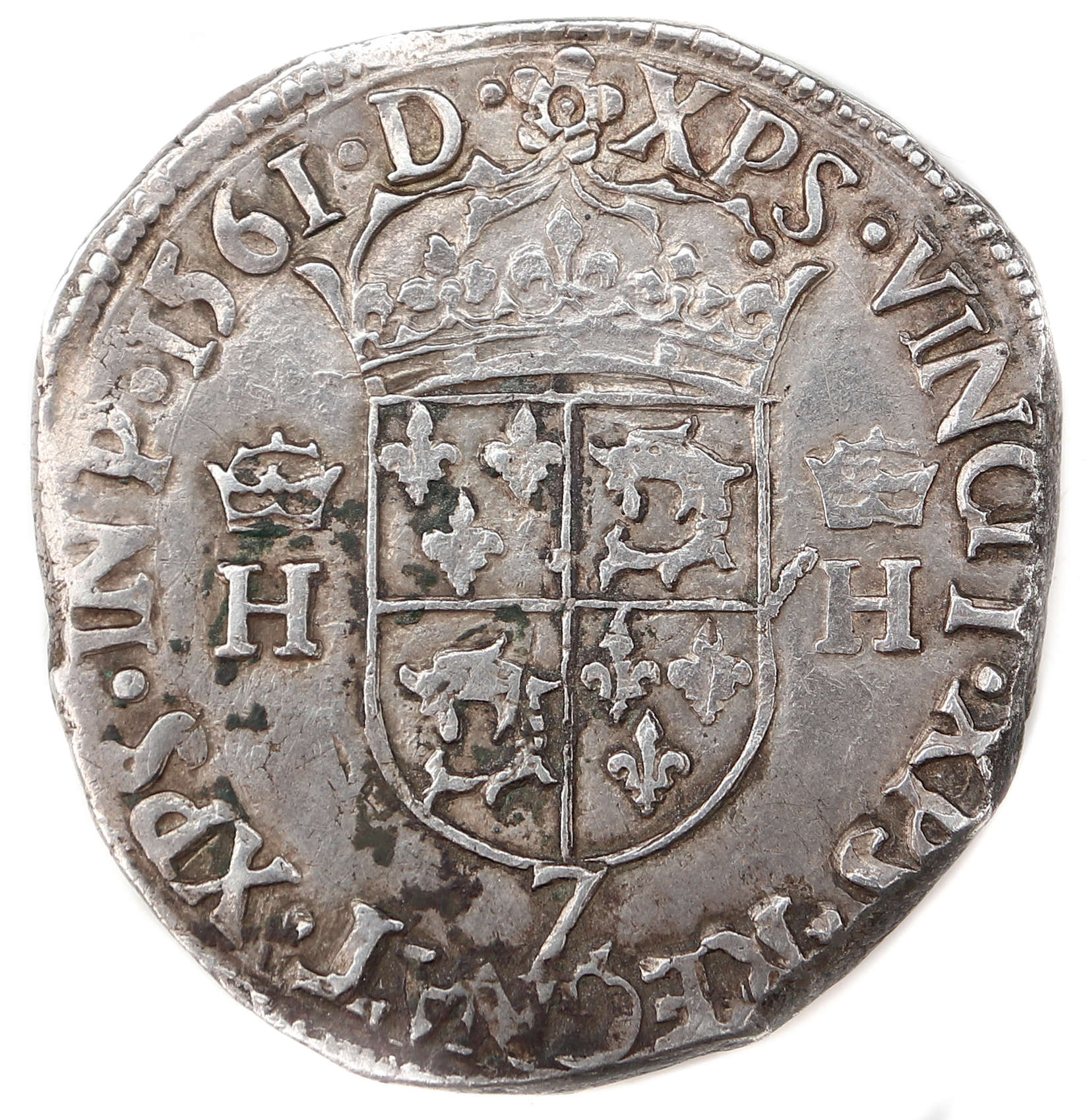 Lettre d'atelier : Z (au revers sous l'écu) Point secret : NON Millésime : 1561 Chiffre de frappe connu : 101 270 ex. (buste normal et buste large et 1/2 testons) |
