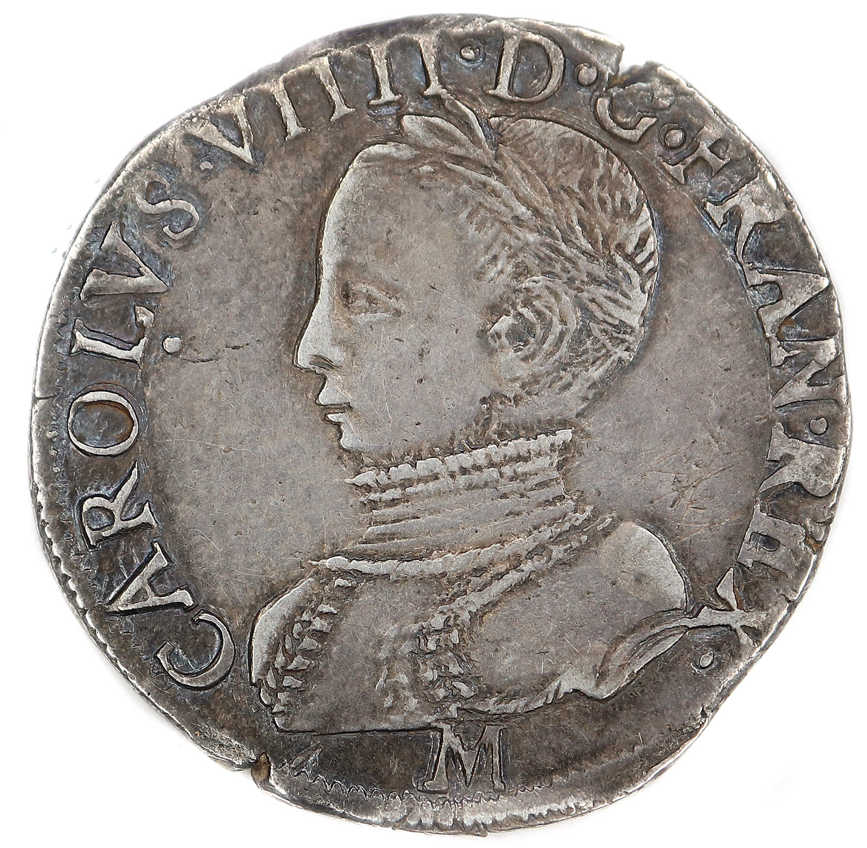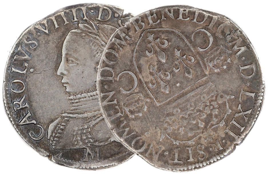 pour les testons de Charles IX, le poids est un peu léger . Axe des coins : 5 h. |