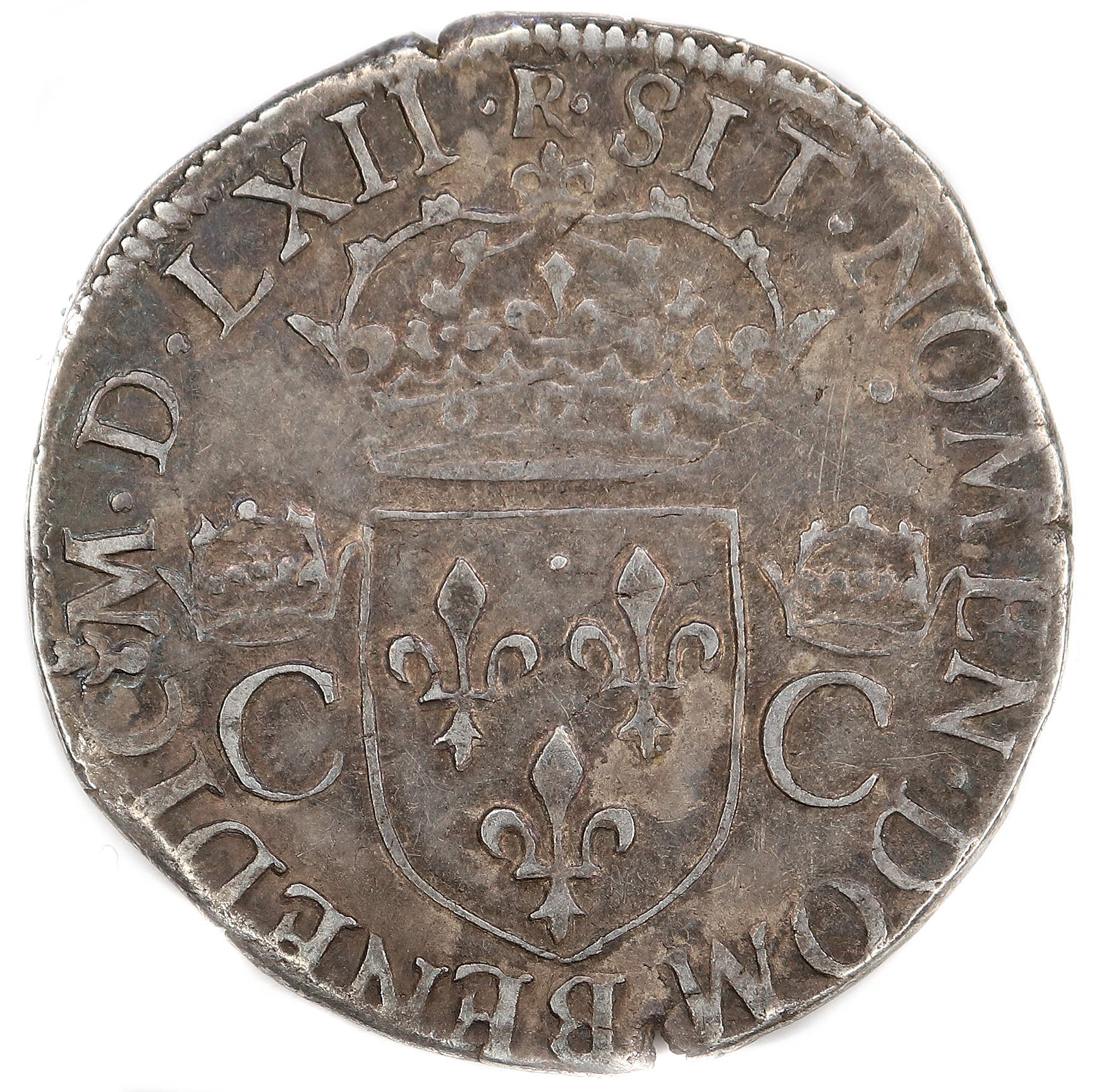 Lettre d'atelier : M (au droit sous le buste) Point secret : 5éme (au droit et au revers) Millésime : MDLXII Chiffre de frappe connu : 351 823 ex. (avec 1/2 testons) Indice de rareté : Commun |
