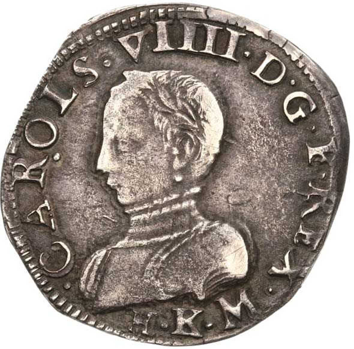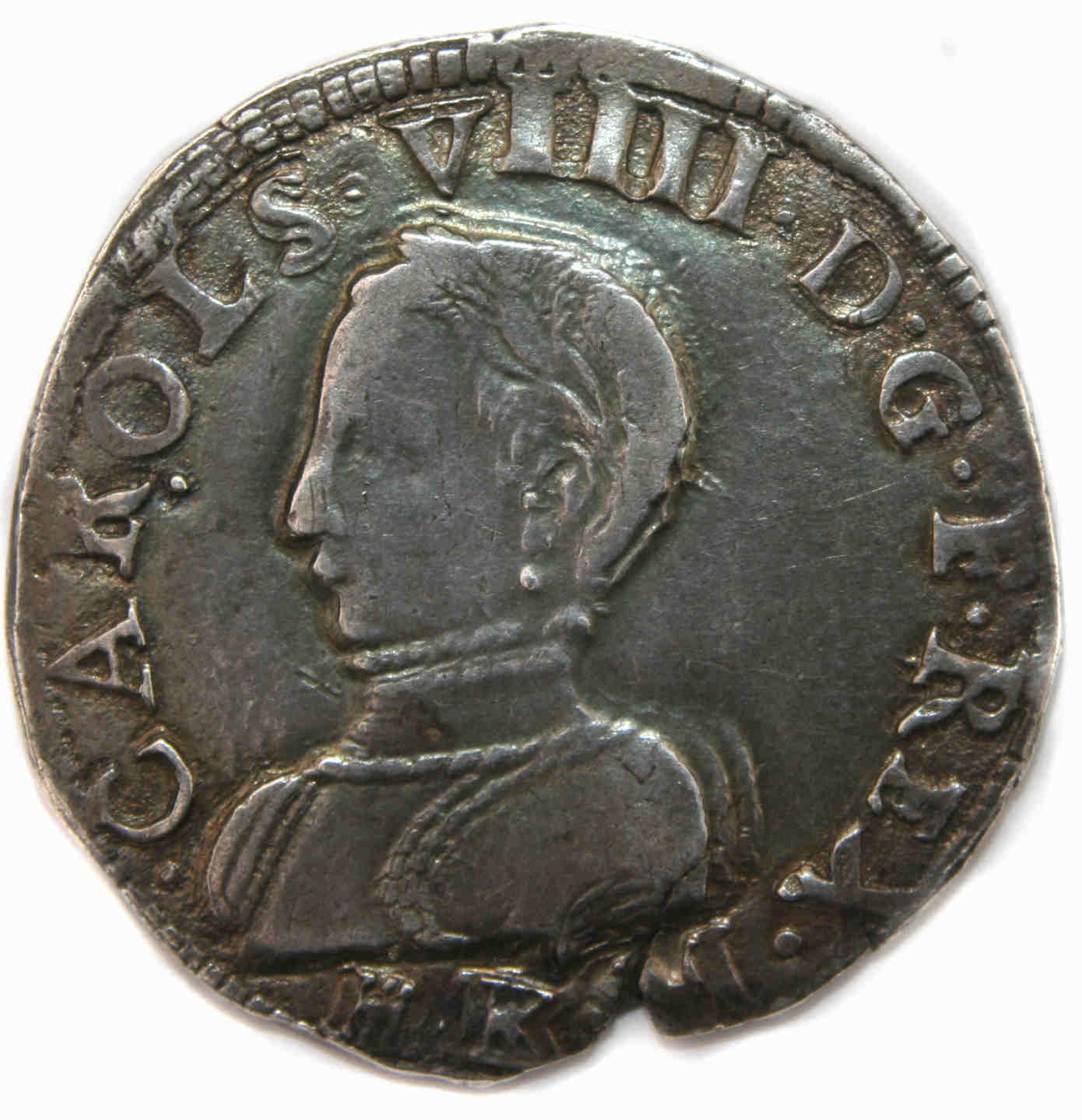 .CAROLS VIIII..D.G.F.REX. Buste du roi, à gauche, cuirassé