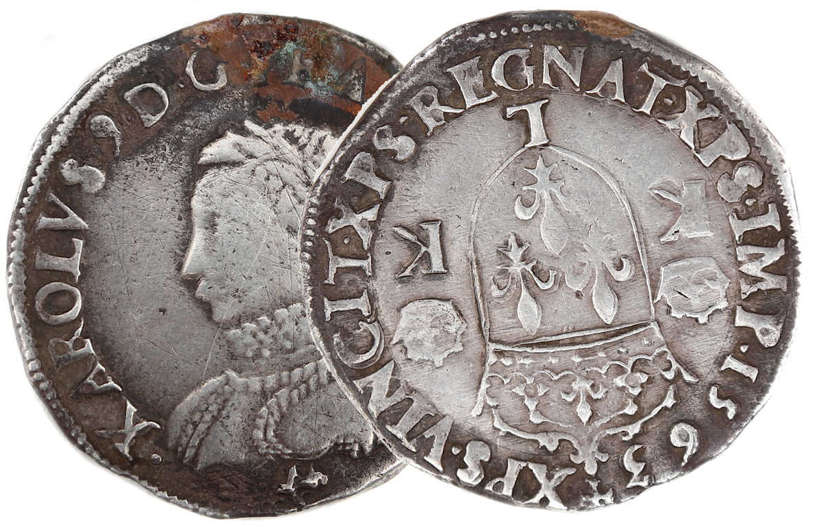 Lettre d'atelier : L (au revers sous l'écu) Point secret : Non Millésime : 1563 Chiffre de frappe connu : 103 326 ex. (avec 1/2 testons) |
