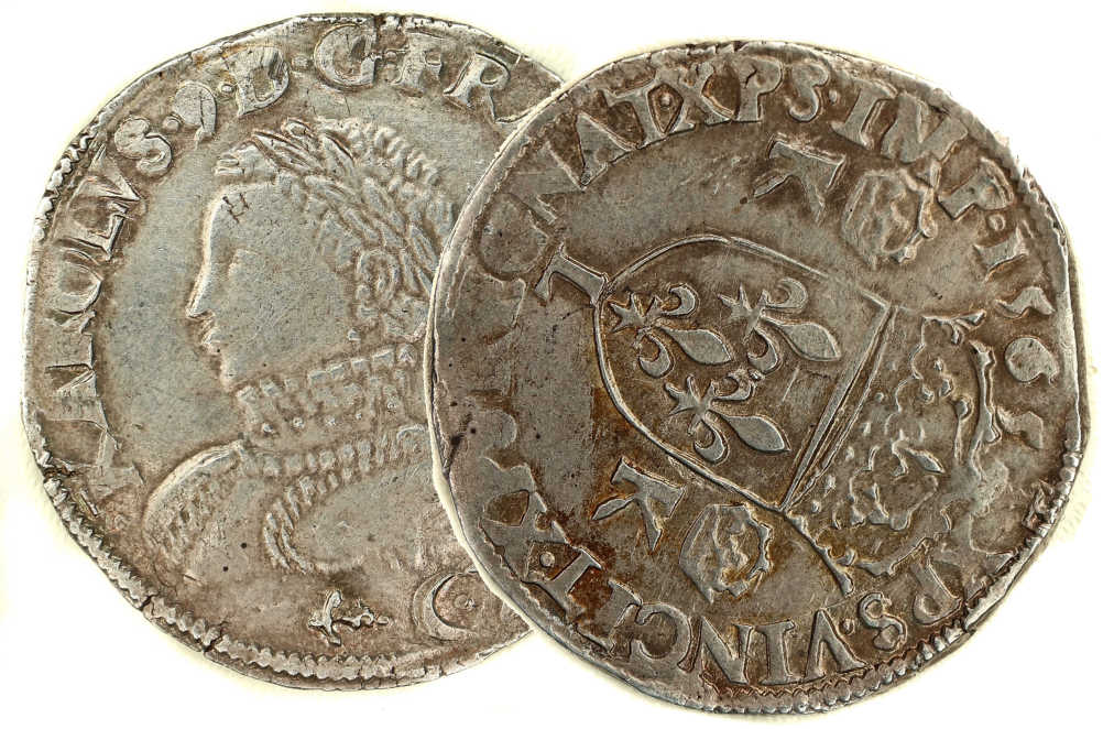 furent frappés à BAYONNE de 1562 à 1575. La monnaie est agréable même si elle présente un peu d'usure sur les légendes et l'effigie. Le flan est régulier et assez lourd puisque malgré le frai le poids de la monnaie reste supérieur au poids théorique. Il est taché au revers. Axe des coins : 4 h. |