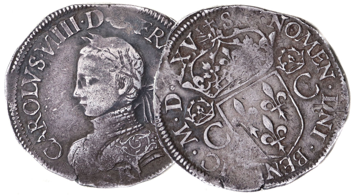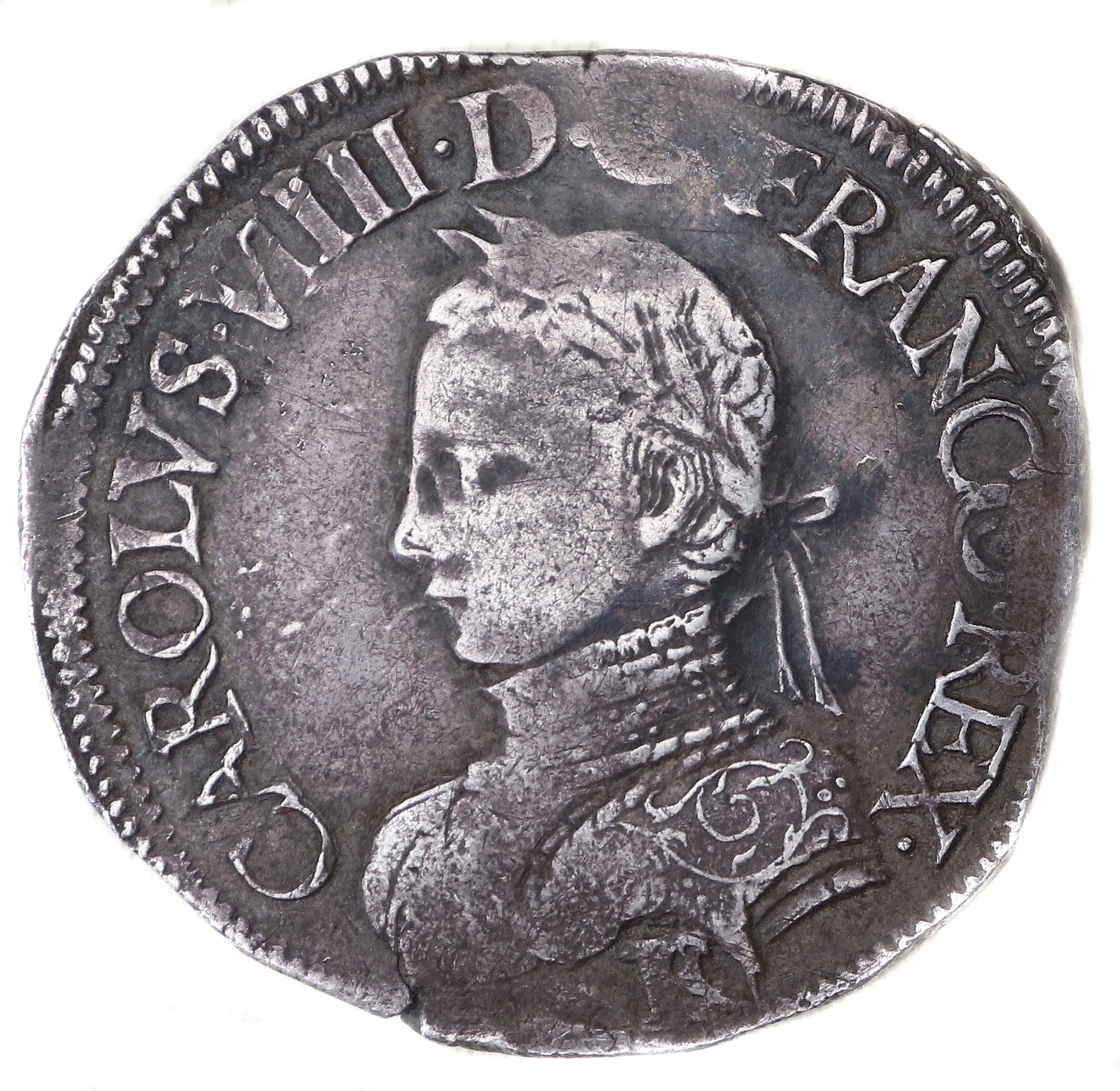 .CAROLVS VIIII..D.G.FRANCO REX F Charles VIIII par la grâce de Dieu roi des Francs Buste