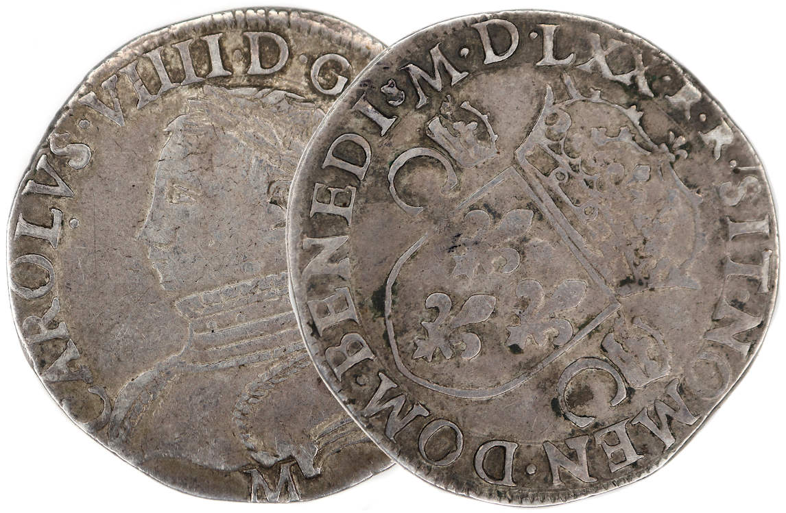 furent frappés en grand nombre à TOULOUSE de 1561 à 1572. Ensuite l'atelier frappa des testons du 10 éme type jusqu'en 1575. Le poids est assez léger. La monnaie présente quelques