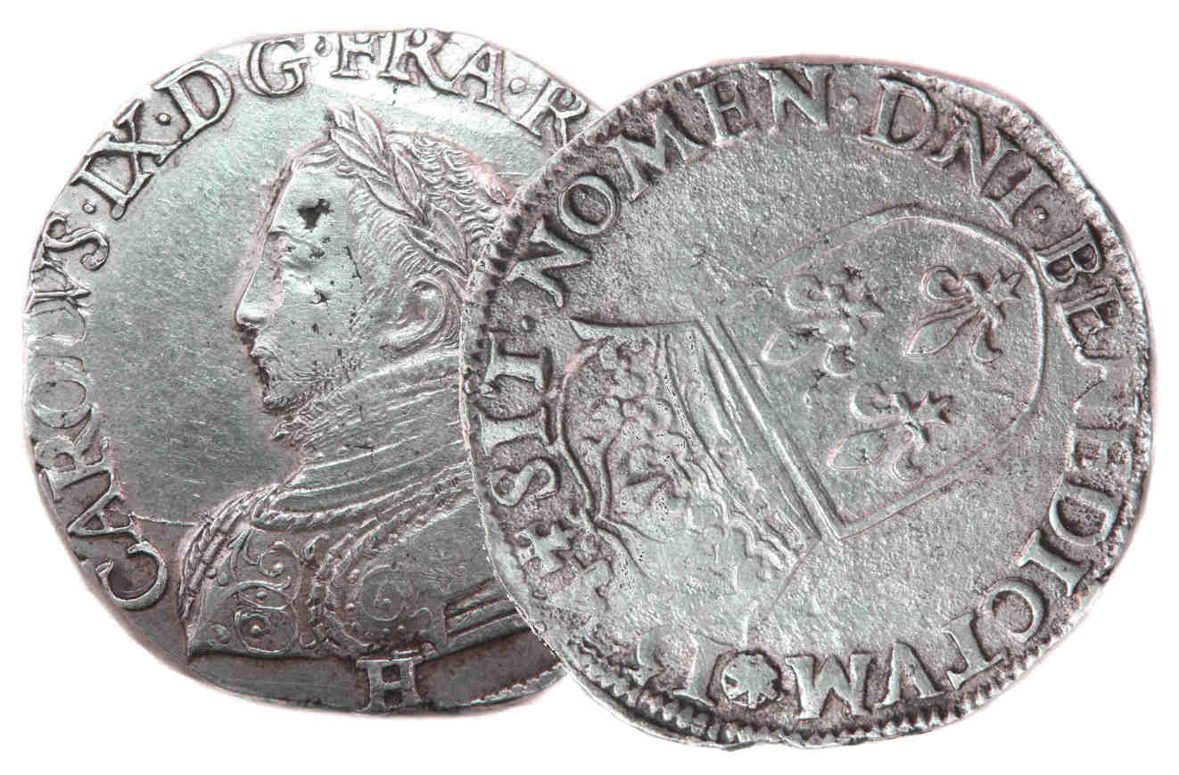 CAROLVS.VIIII.D.G.FRA.REX.MDLXXIIII H Charles VIIII par la grâce de Dieu roi des Francs Buste du roi, barbu, à gauche,