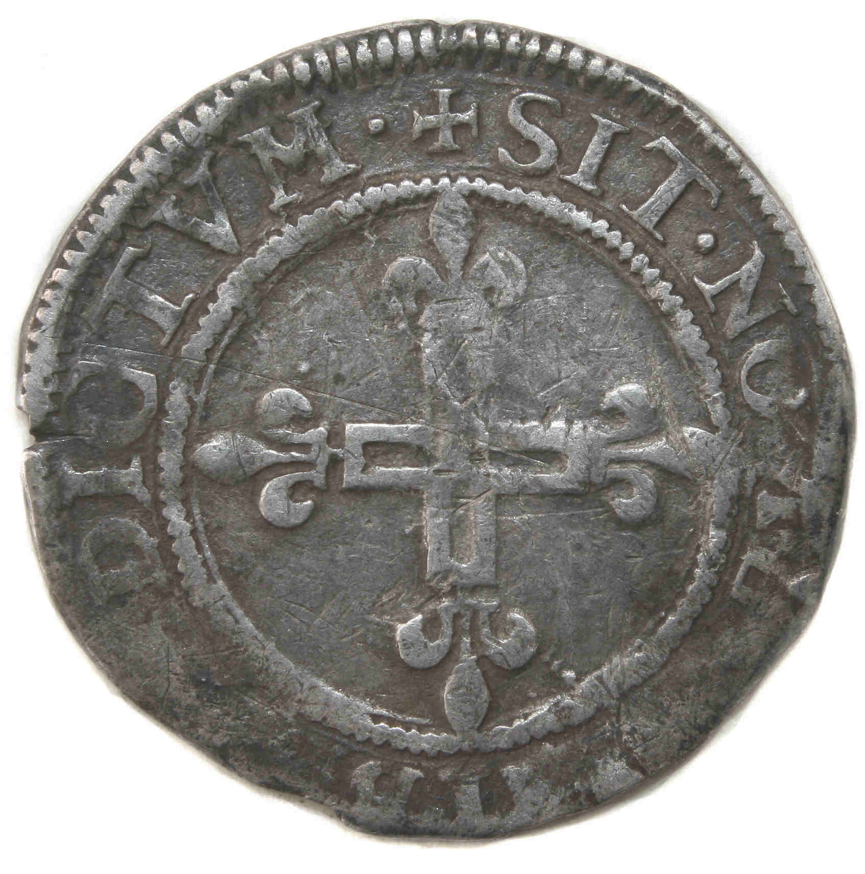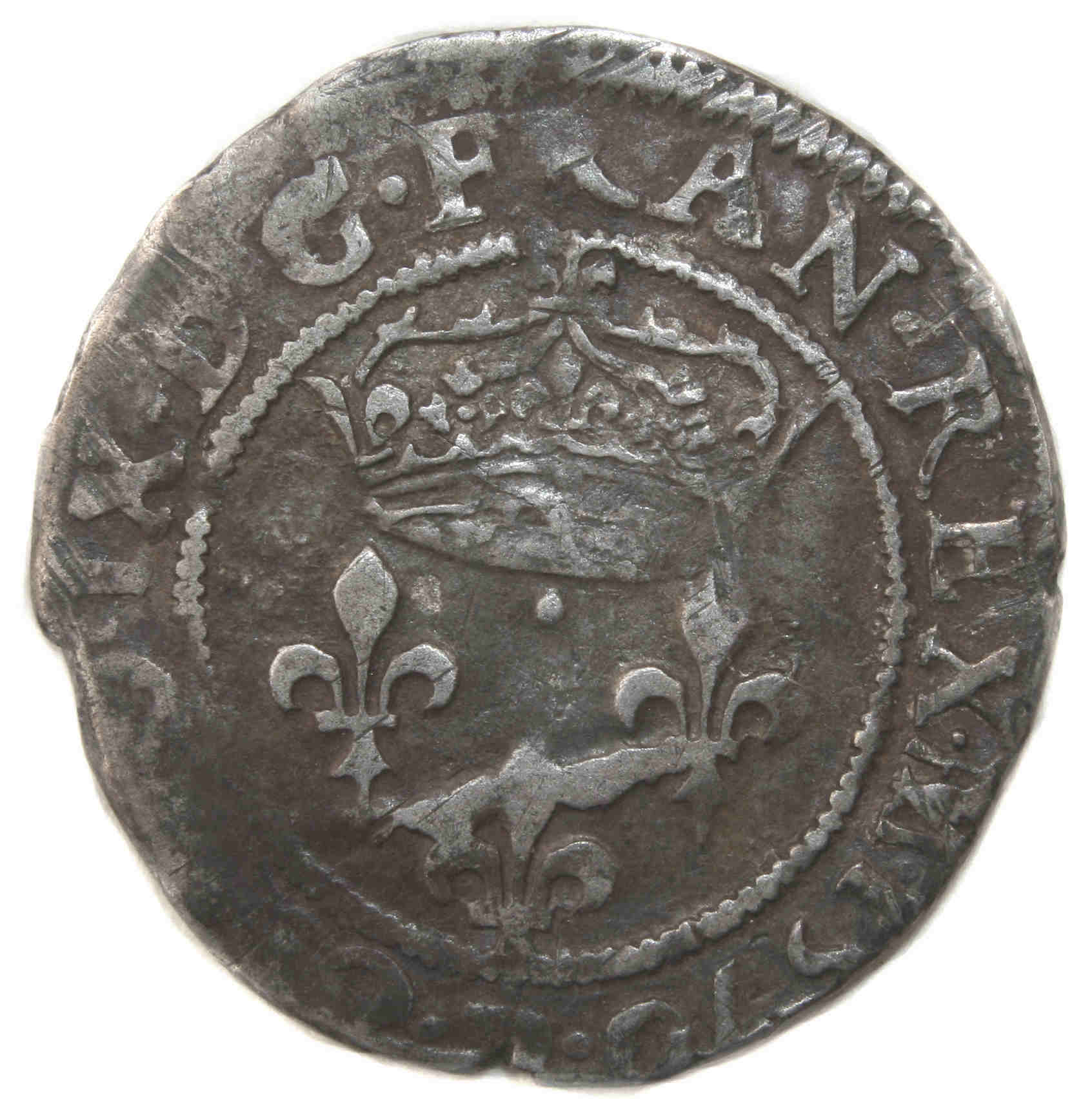 .CARO.IX..D.G.FRAN.REX.(dif).1570.R Charles VIIII par la grâce de Dieu roi des Francs Trois lys posés deux et un sous