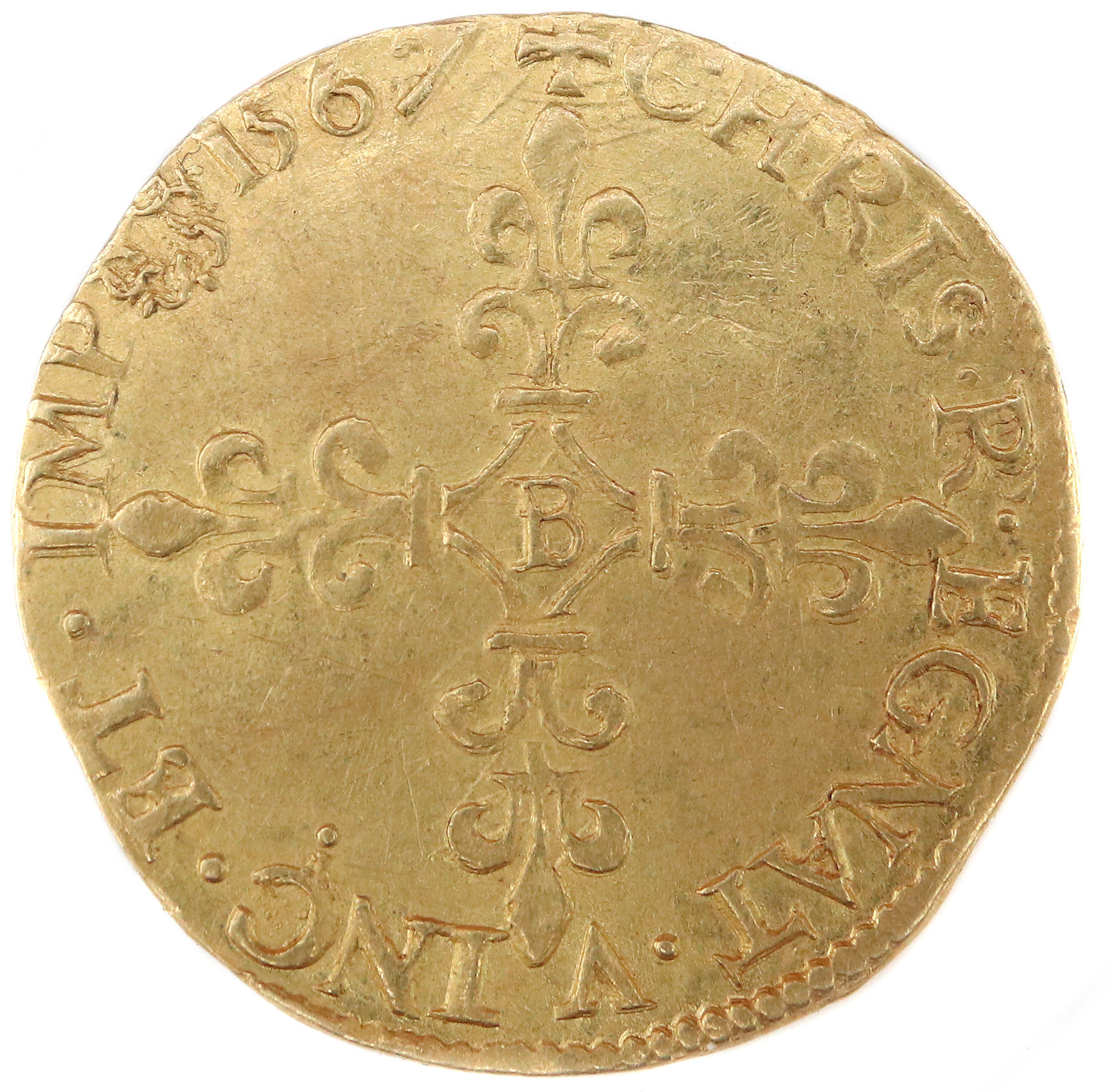 de la croix fleurdelisée) Point secret : 15 éme (au revers) Millésime : MDLXVII Chiffre de frappe connu : 80 300 ex(avec