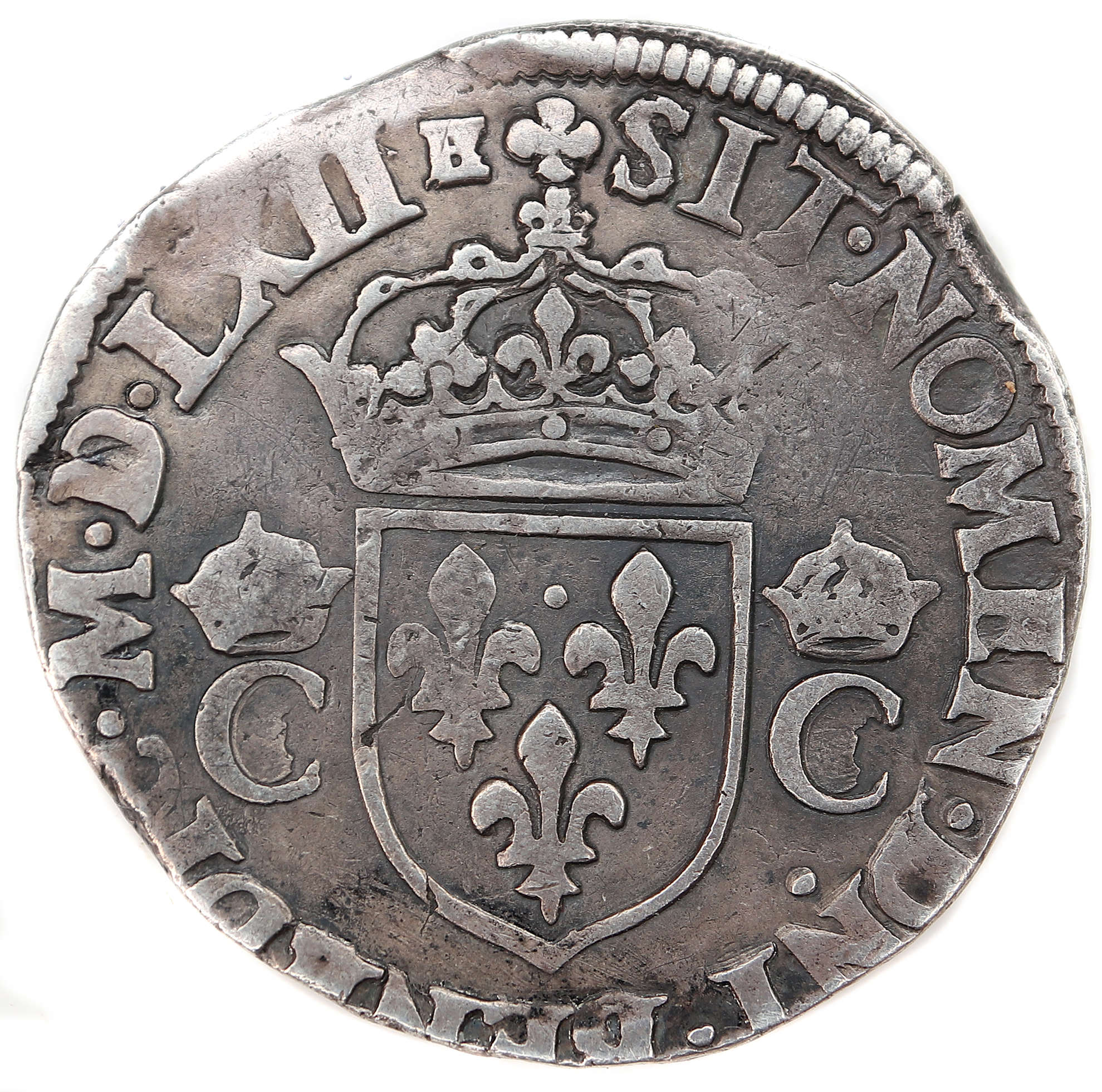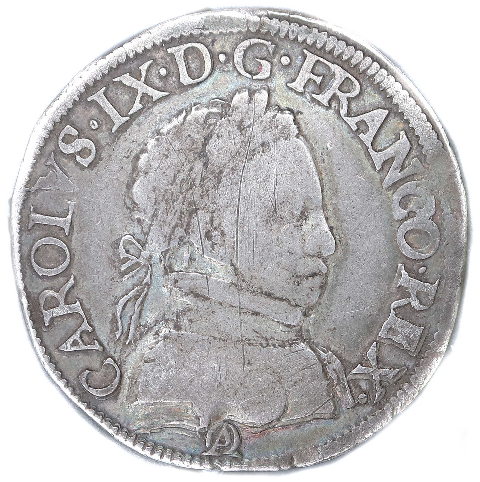 CAROLVS.IX.D.G.FRANCO.REX. Charles IX par la grâce de Dieu roi des Francs Buste du roi, à droite, cuirassé