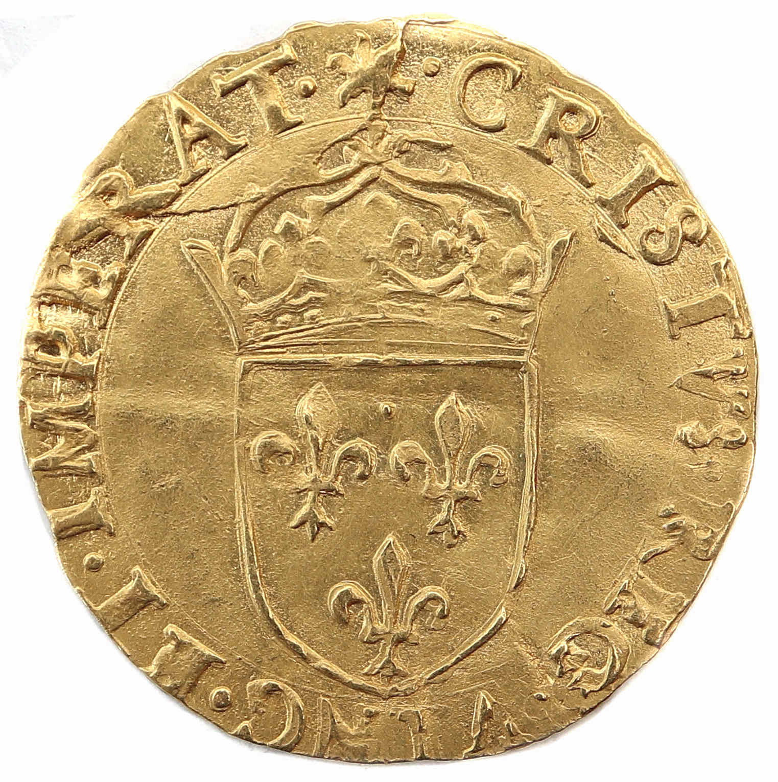 .(soleil).CRISTVS.REG.VINC.ET.IMPERAT Christ règne,vainc et commande Ecu de france couronné |