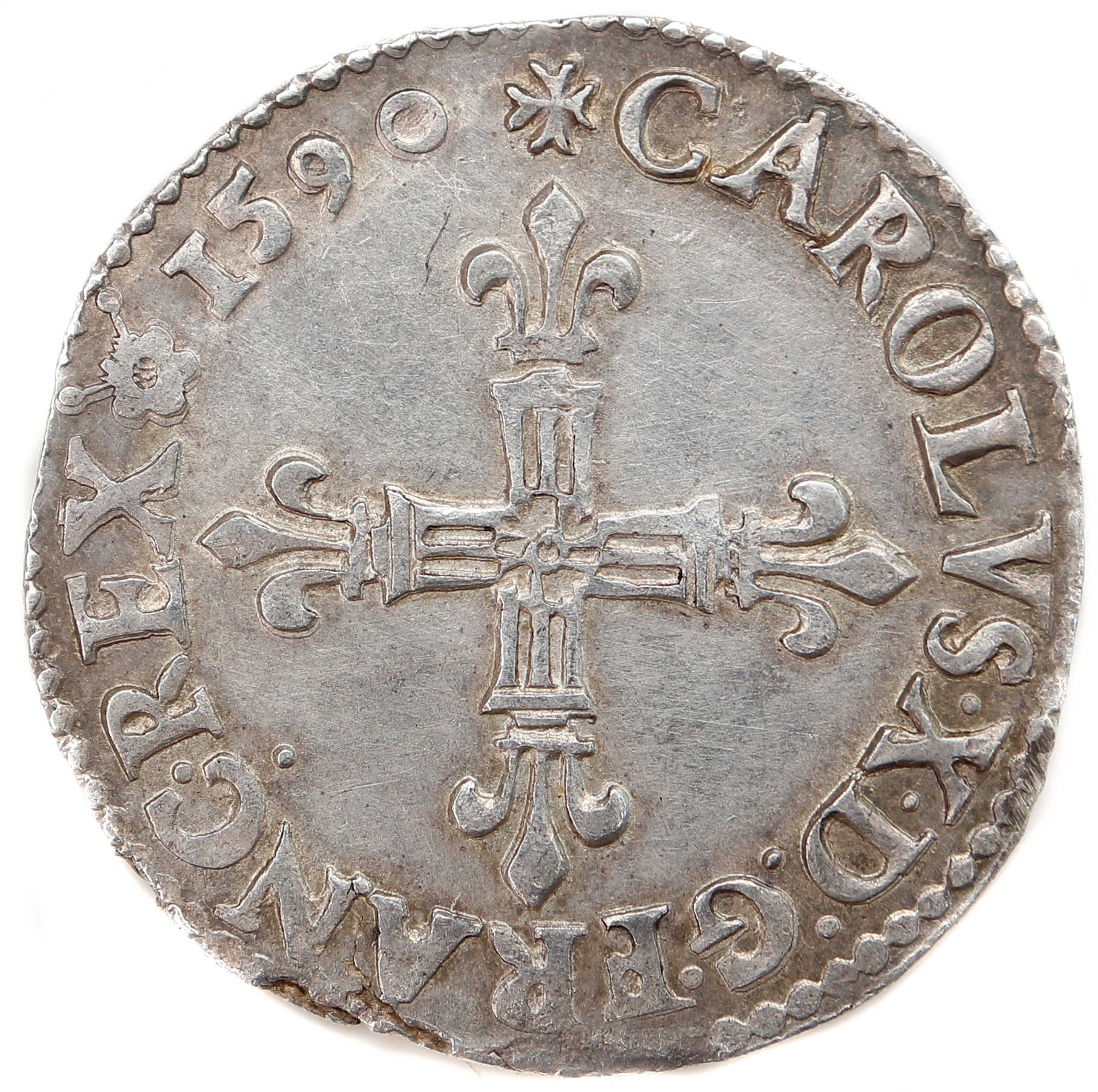 d'écu au nom de Charles X furent frappés par l'atelier de ROUEN de 1590