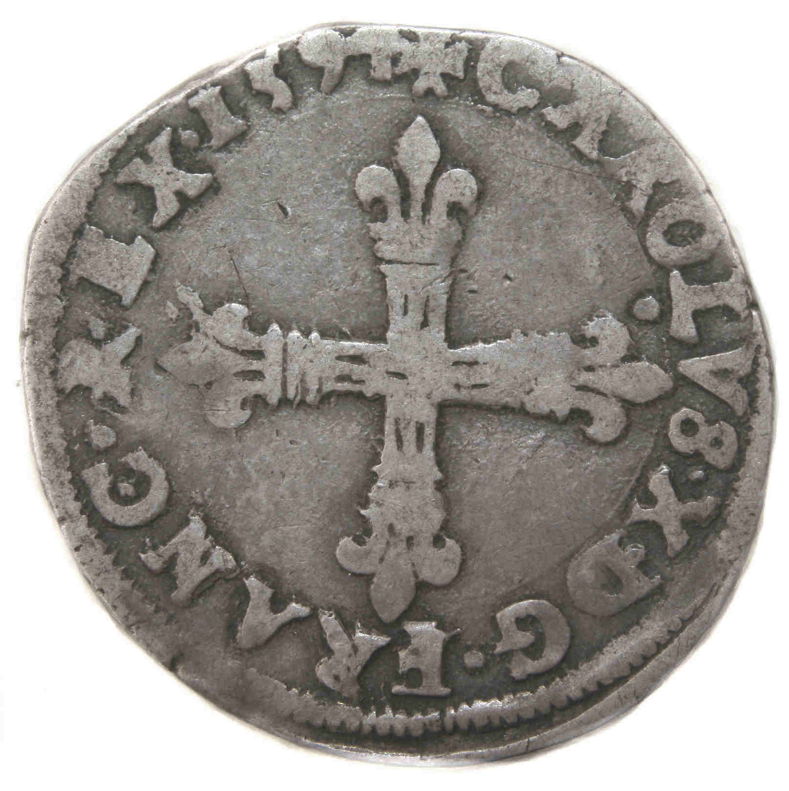 +CAROLVS.X..D:G.FRANC.REX. 1594 Charles X, par la grâce de Dieu, roi de France Croix fleurdelisée avec fleuron cruciforme en coeur