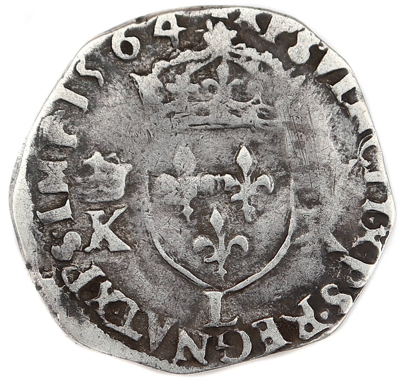 Lettre d'atelier : L (au revers sous l'écu) Point secret : NON Millésime : 1564 Chiffre de frappe connu : 122 604 ex. (avec testons) |