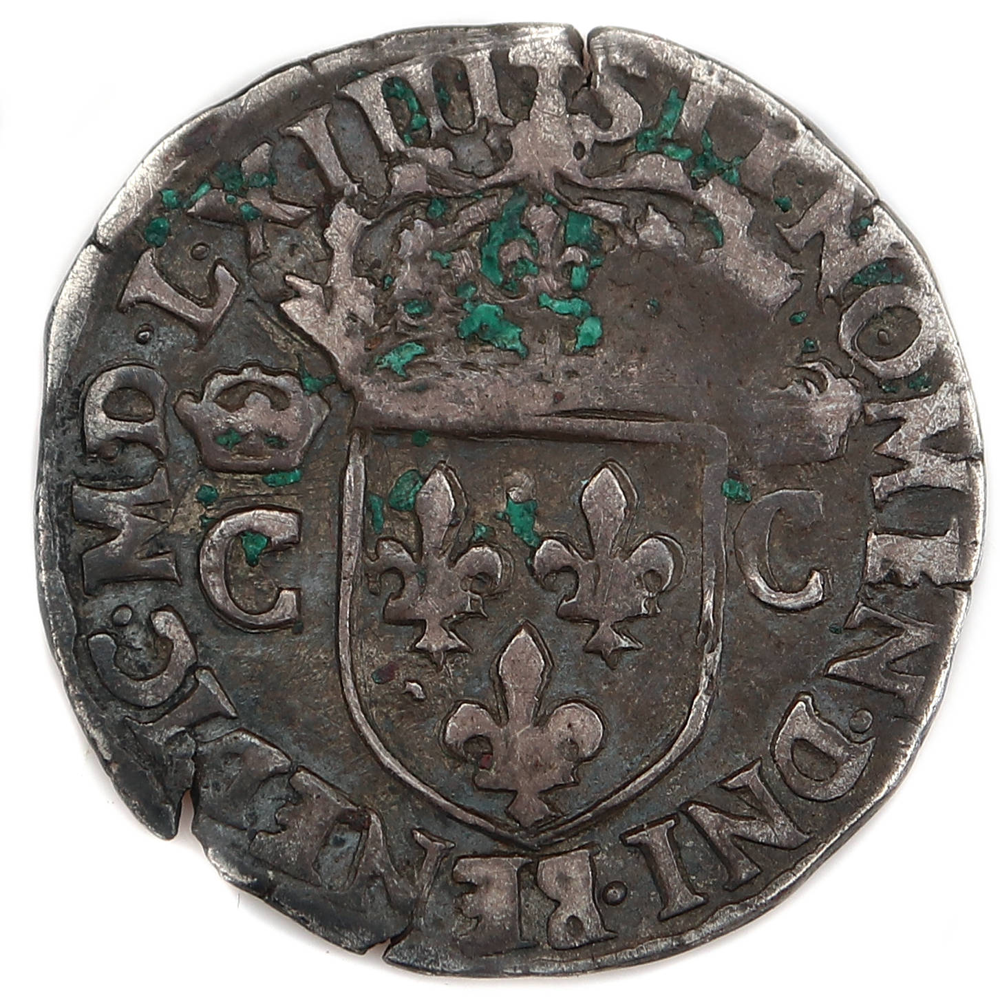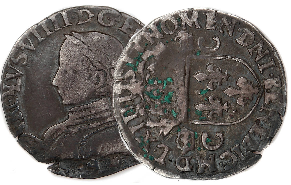 (Sb 4634) et des testons à l'effigie d'HENRI III (Sb 1575) Le flan présente des petits éclatements en périphérie. Belle