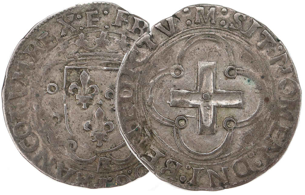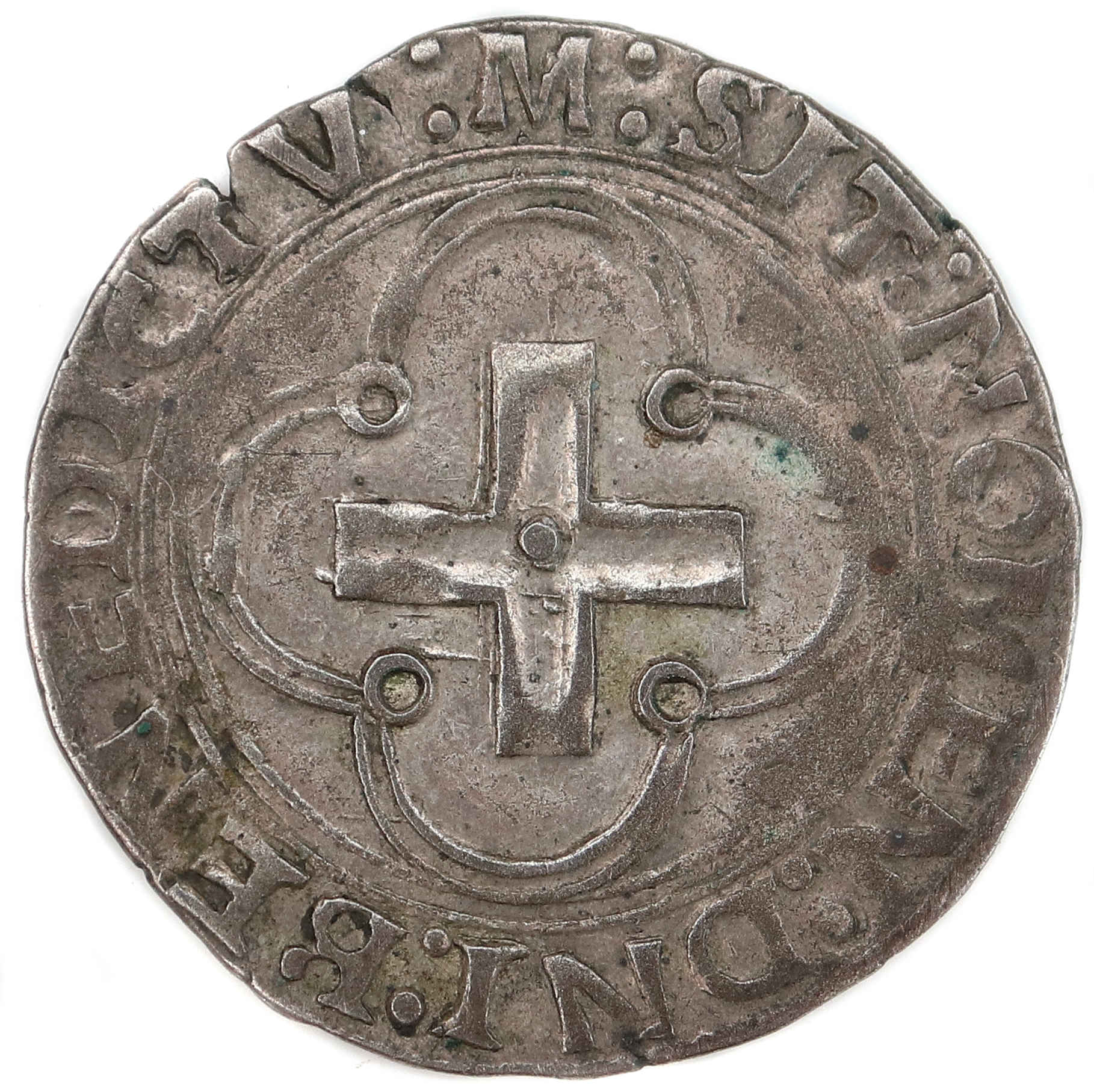 à propos de ce type monétaire : Les douzains à ce type furent frappé dans nombre d'ateliers suite aux lettres patentes du 19 mars 1541 et l'adoption du type "à la croisette" pour les monnaies. L'atelier de Marseille avait été ouvert en 1526, il fut fermé en 1554 (réouvert par les LIGUEURS de 1590 à 1596). Outre la lette d'atelier (abréviation de "et"), on trouve la lettre M jusqu'en 1551. Il existe des douzains à la croisette frappés par les 3 maîtres d'atelier qui se sont succédés à Marseille : François PERRIN (un P) entre 1540 et 1542, André de MONTAGUT (AM en monogramme) entre 1542 et septembre 1545 et François CAZE (FC en monogramme) pour la période octobre 1545-1549. Pour ce dernier aucun exemplaire n'avait été pointé lors de la rédaction du FRANCIAE IV Bel exemplaire pour ce type et cet atelier. Axe des coins : 12 h. |