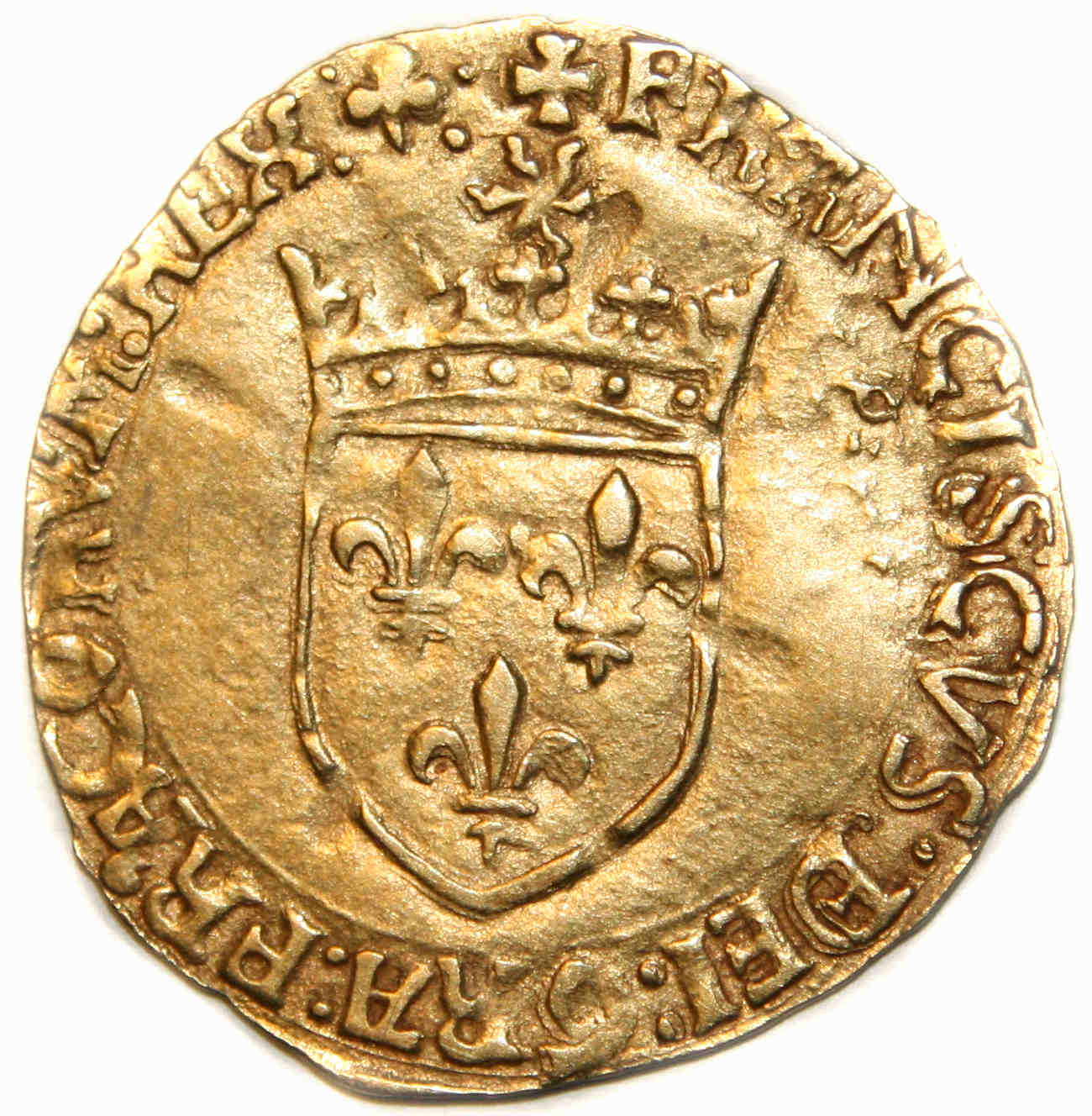 à propos de ce type monétaire : Les écu d'or au soleil à ce type (5éme) furent frappés suite à l'ordonnance du 21 juillet 1519 La monnaie est belle mais un flan un peu court fait sortir une parie de la légende au revers. A noter les erreurs VICIT et FRACORVM ainsi que la forme particulière du N dans REGNAT |