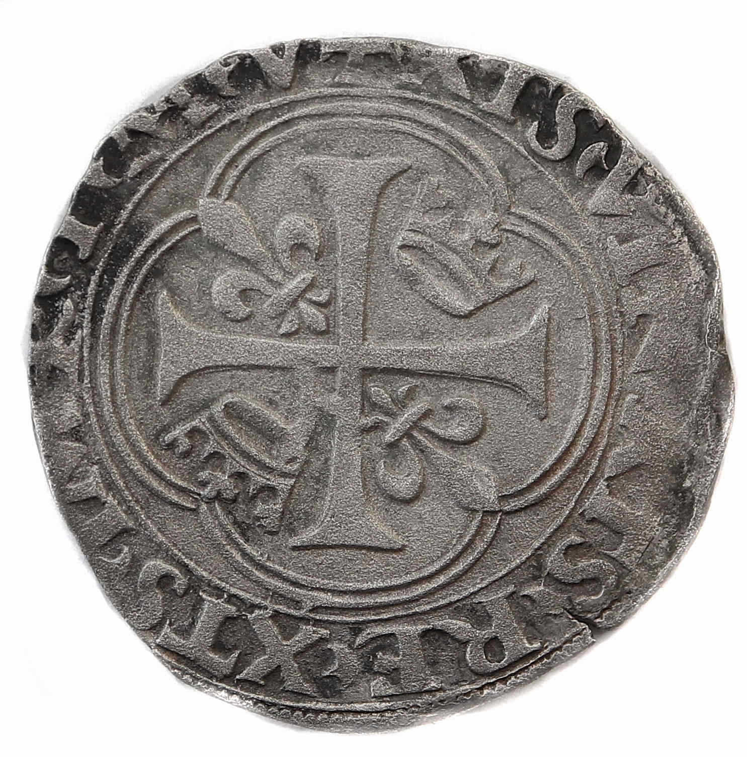 à propos de ce type monétaire : Les grands blancs à ce type furent frappés à Turin entre 1538 et 1540. La légende du revers se distingue des autres types qui est habituellement SIT NOMEN DNI BENEDICTVM La monnaie reste trés convenable pour ce type. La ponctuation est réalisée au moyen de petits croissants. Concernant un exemplaire figurant dans la VSO 27 chez iNumis, St SOMBART indique que "peu d'exemplaires semblent connus.". Effectivement ce type ne se voit pas souvent dans les plateaux lors des ventes ou des bourses numismatiques. |
