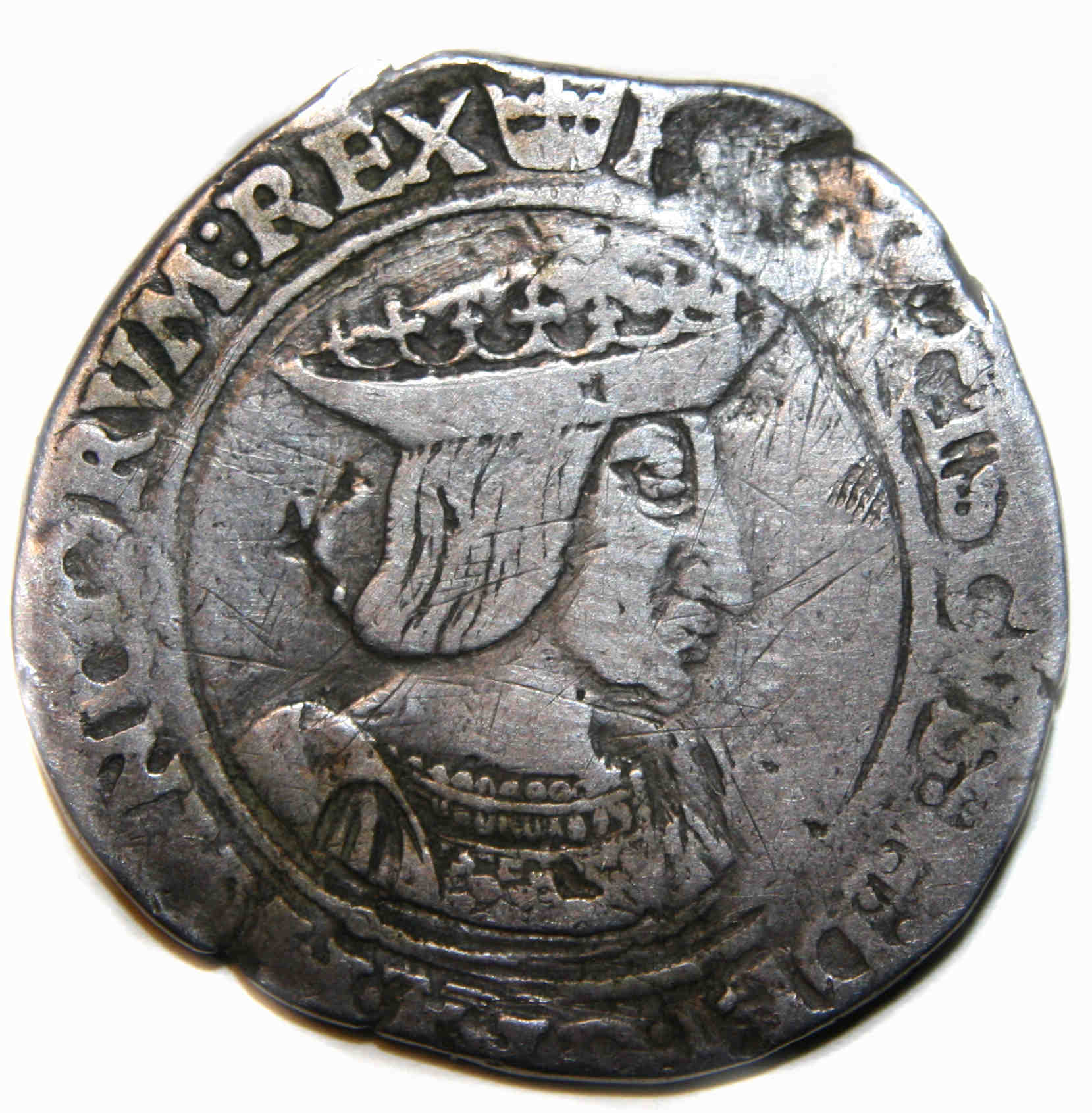 à propos de ce type monétaire : Les testons à ce type ( pour Duplessy et 5 éme pour Lafaurie) furent frappés à Bourges, La Rochelle, Limoges, Paris, Poitiers, Rouen, Toulouse et Tours La monnaie reste agréable malgré ses défauts (rayures, légendes partiellement usées, manque de métal derrière la chevelure du roi). Ce teston est postérieur au 10 septembre 1521. En effet, les lettres patentes ordonnant la 2éme émission , réduisent le titre de 938/1000 à 899/1000 et ordonnent le remplacement de la croisette initiale du revers par une couronnelle |
