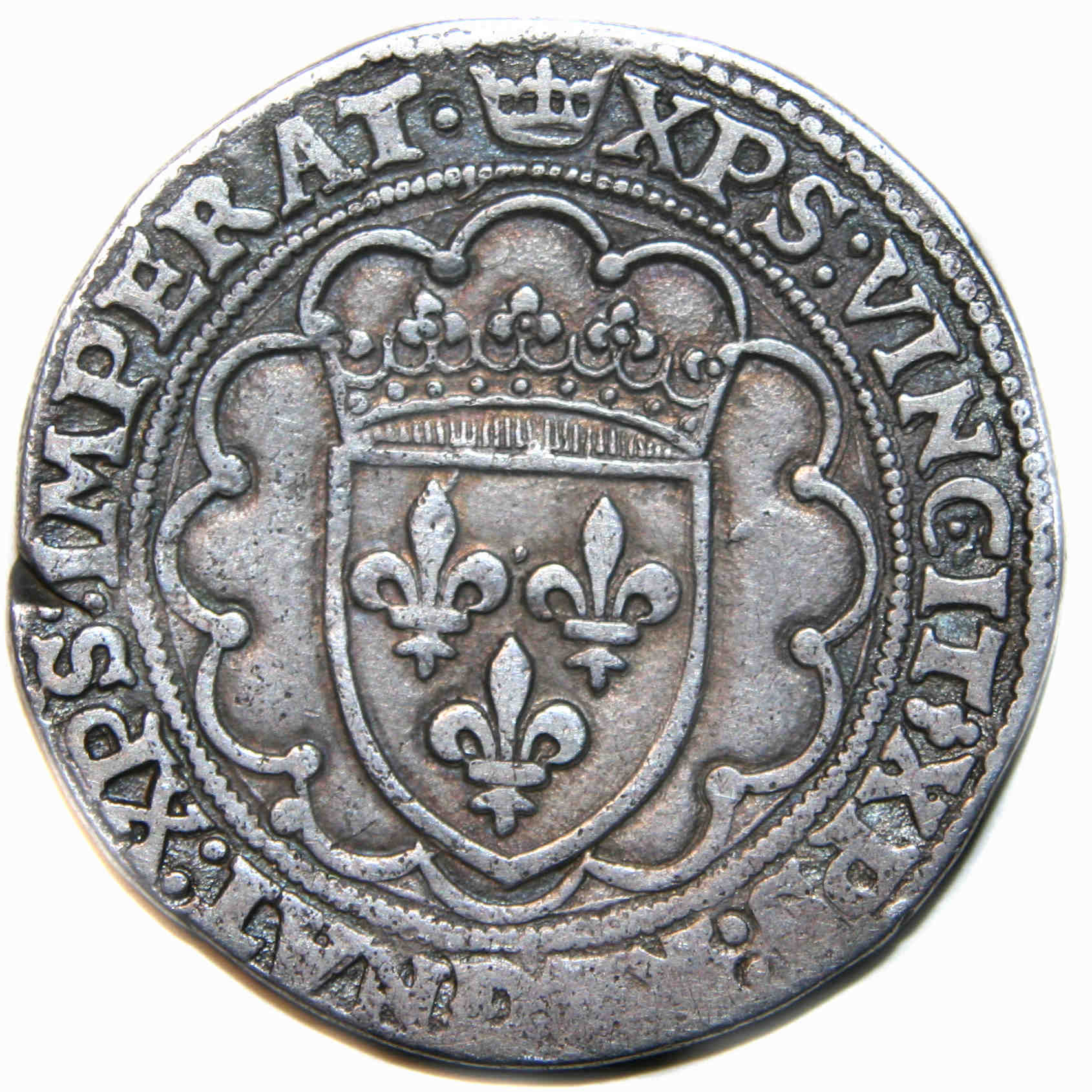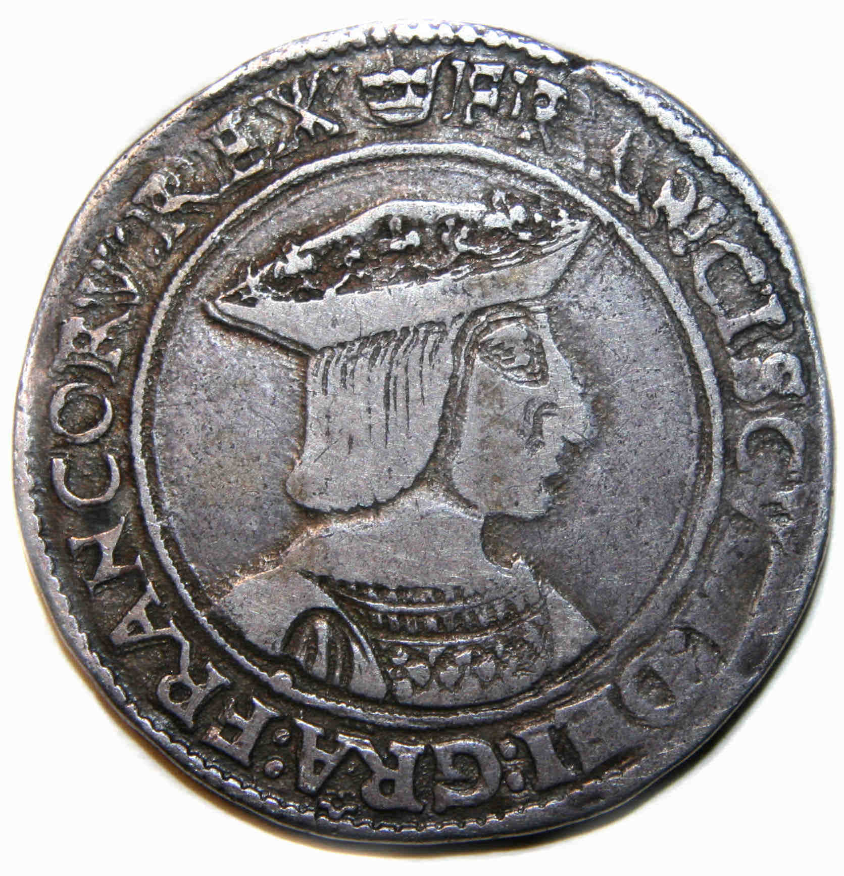 à propos de ce type monétaire : Les testons à ce type ( pour Duplessy et 5 éme pour Lafaurie) furent frappés à Bourges, La Rochelle, Limoges, Paris, Poitiers, Rouen, Toulouse et Tours Le flan est régulier et la frzppe est bien centrée mais présente un tréflage sur la partie supérieure de la légende au droit. Ce teston est postérieur au 10 septembre 1521. En effet, les lettres patentes ordonnant la 2éme émission , réduisent le titre de 938/1000 à 899/1000 et ordonnent le remplacement de la croisette initiale du revers par une couronnelle |