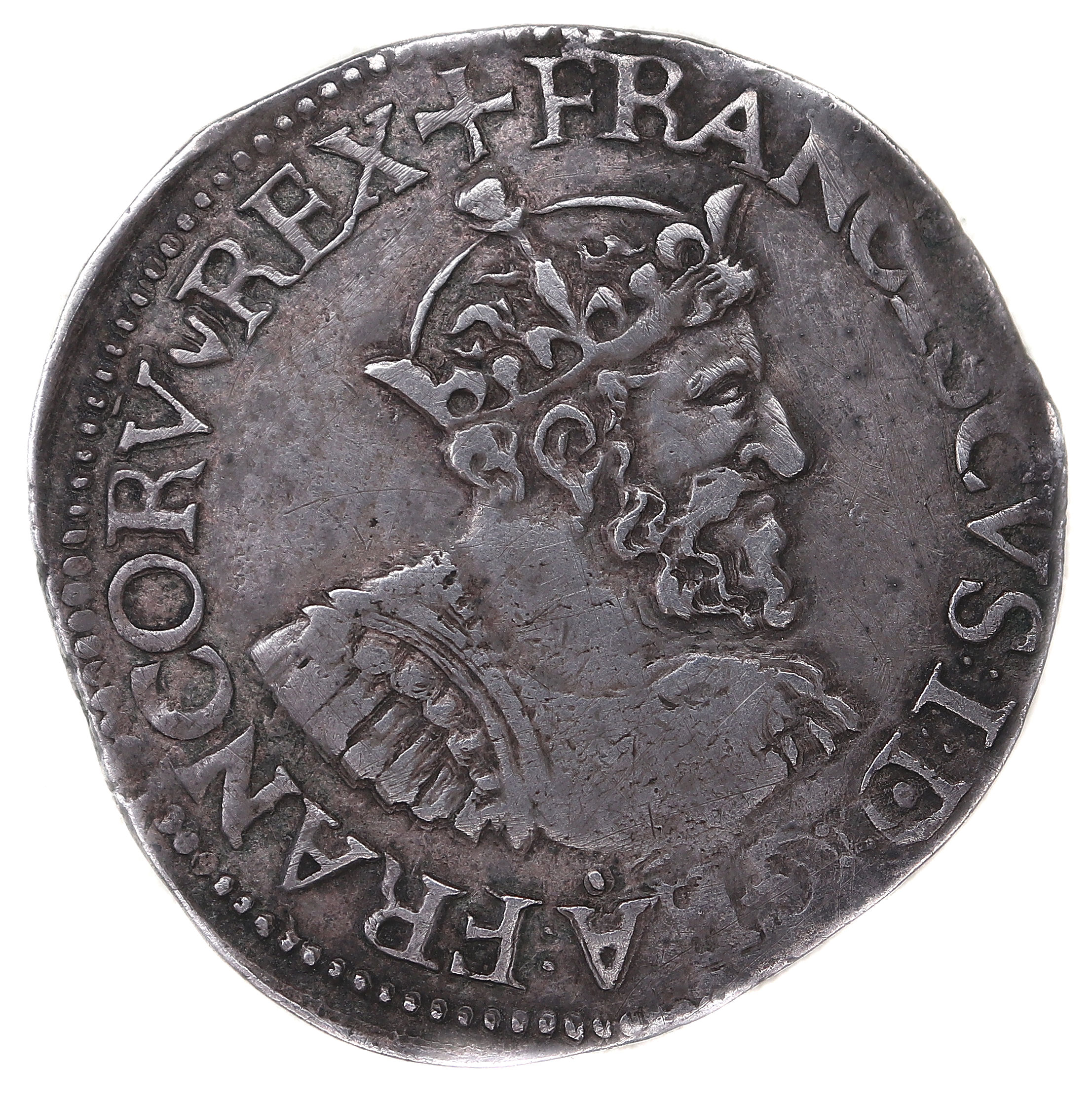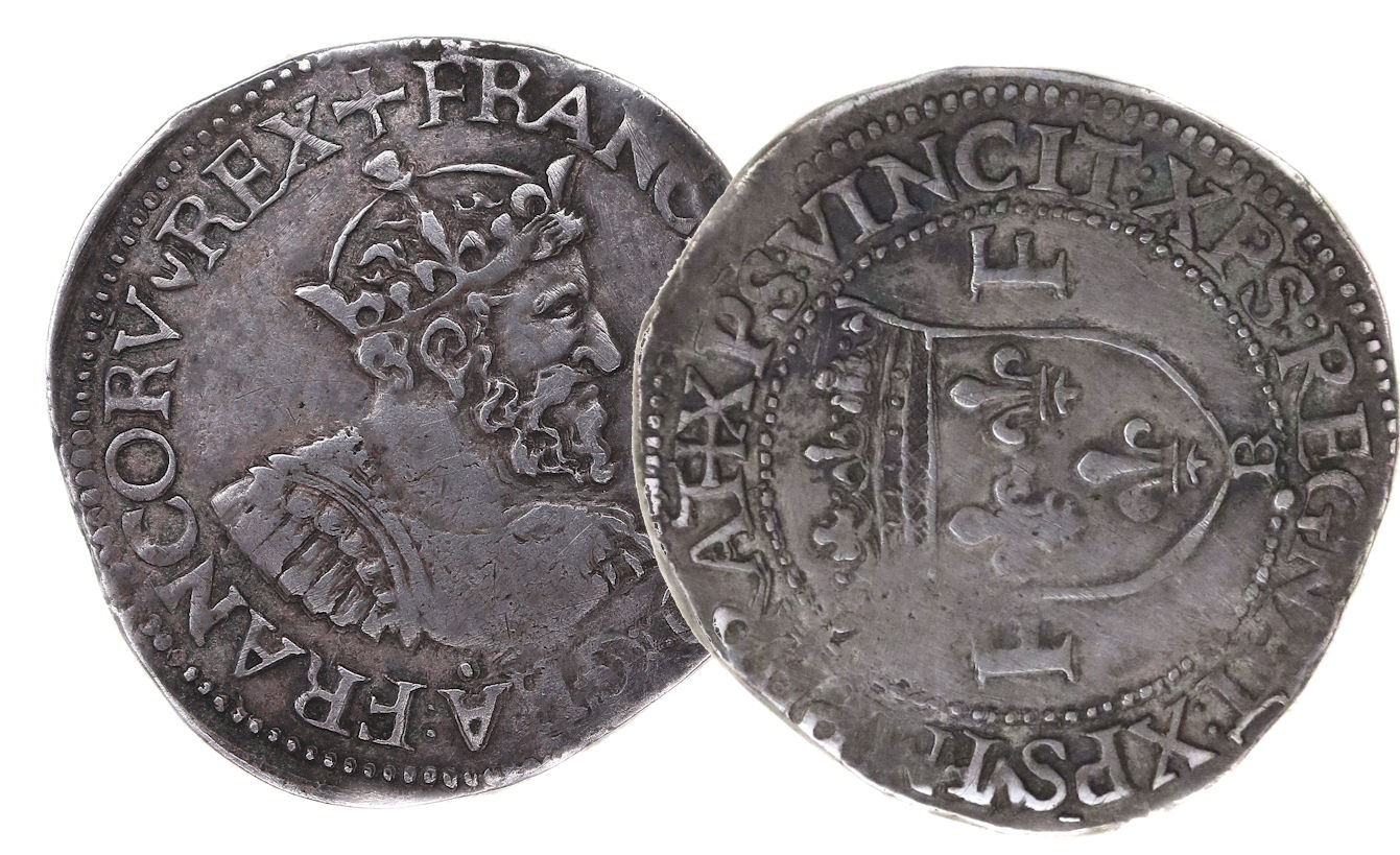 à propos de ce type monétaire : Assez bel exemplaire pour ce type, avec un grand buste. L'attitude du roi parait "sévére". A noter la particularité de la légende qui indique le nombre du roi : FRANCISCUS I Axe des coins : 9 h |