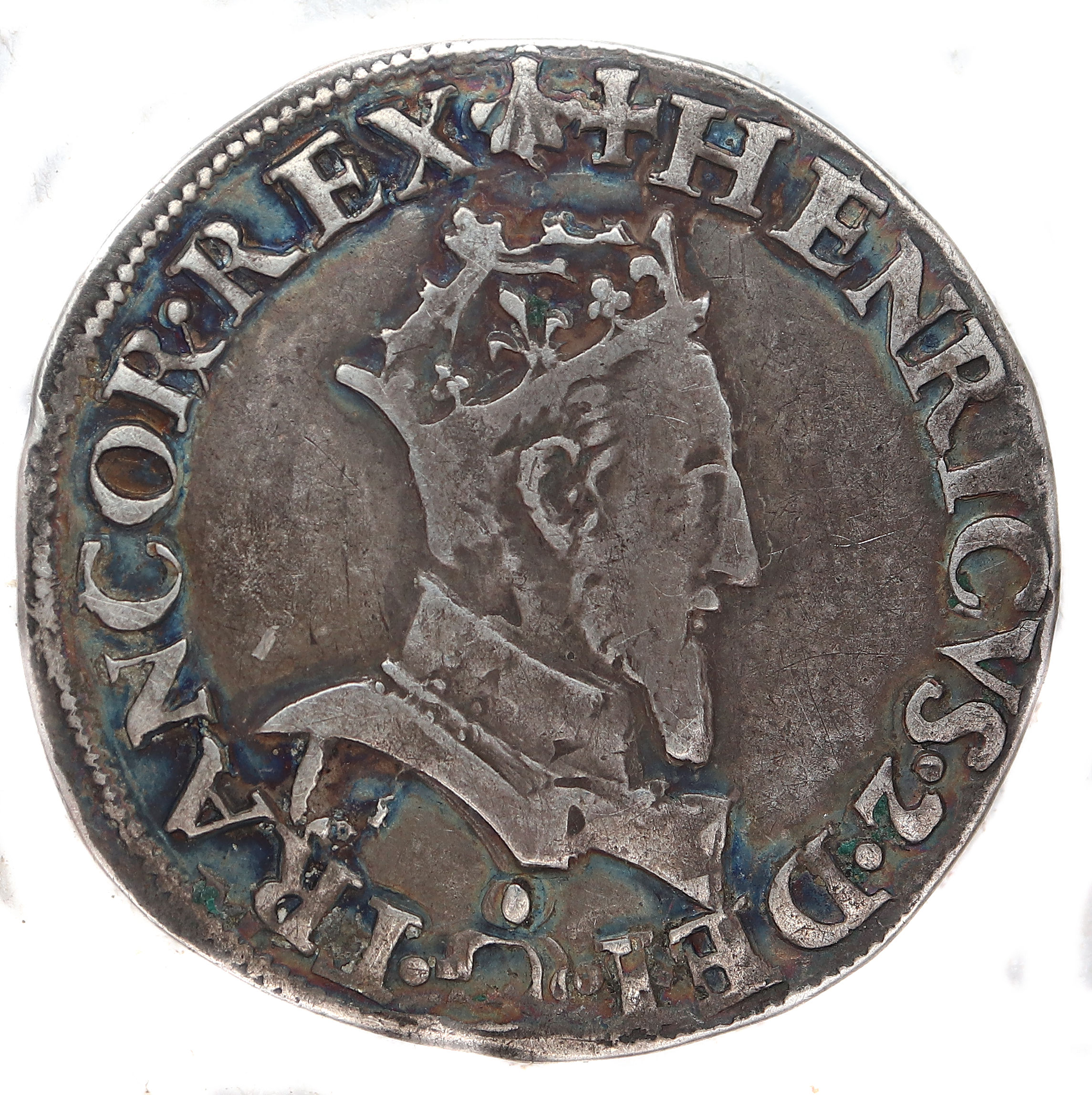 +HENRICVS.2.DEI.G.FRANCOR.REX .(coquille) HENRI 2, par la grâce de Dieu, roi des Francs Buste du roi à droite avec cuirasse |