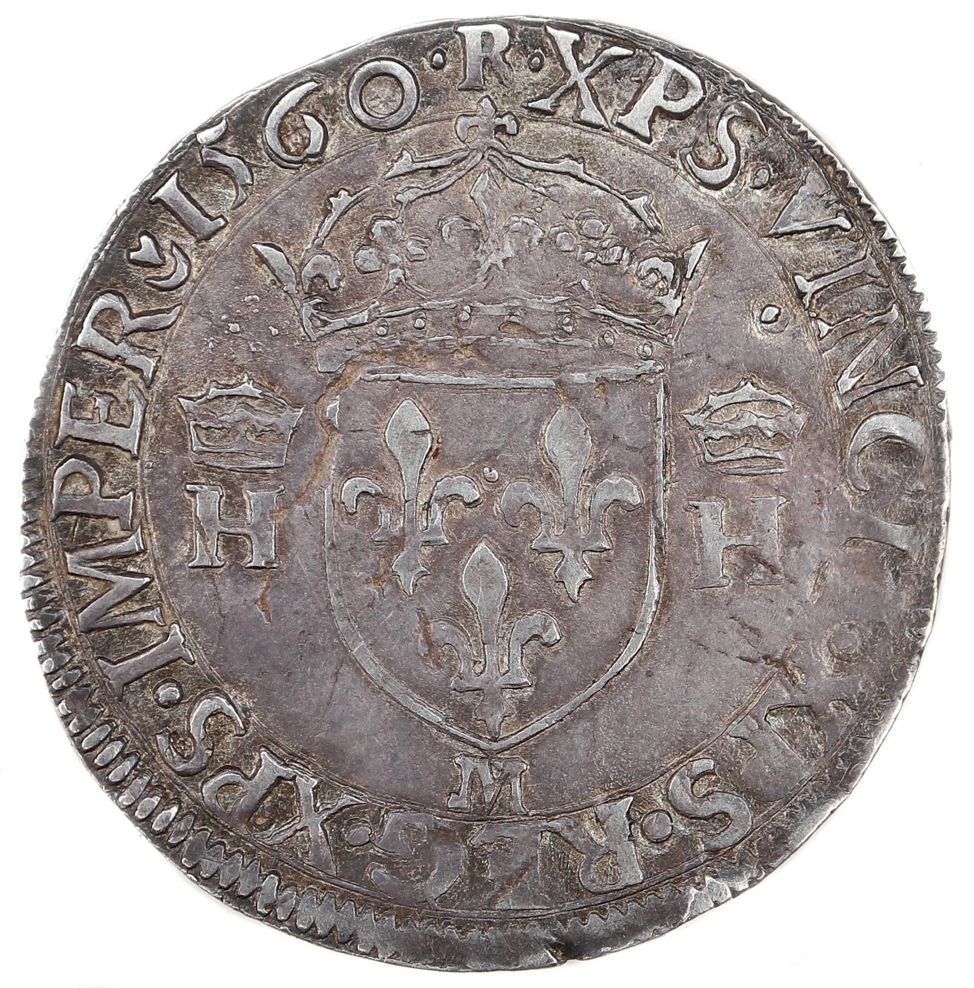 Lettre d'atelier : M Point secret : Oui (5éme au droit et au revers) Millésime : 1560 Chiffre de frappe connu : 260 377 ex (avec testons) |