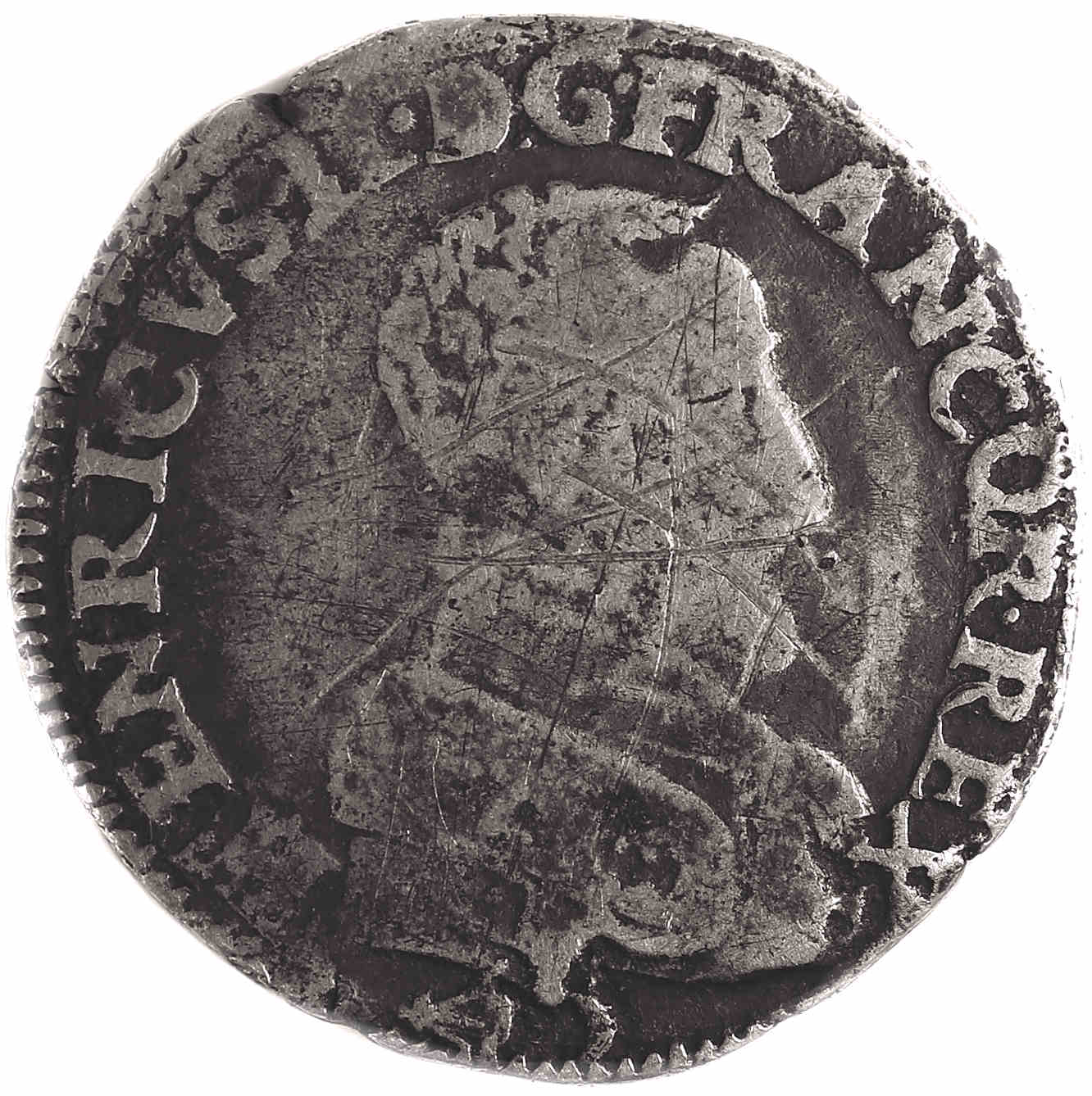 HENRICVS.II.D.G.FRANCOR.REX HENRI, par la grâce de Dieu, roi des Francs Buste du roi à droite avec cuirasse damasquinée |