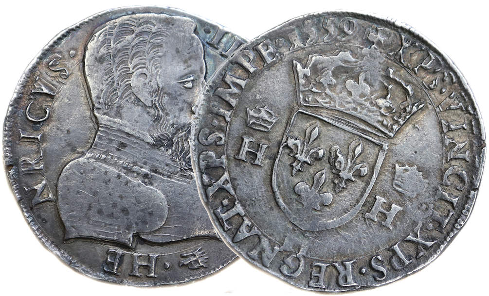 Lettre d'atelier : H Point secret : 9éme (au revers) Millésime : 1559 Chiffre de frappe connu : 43 299 ex (pour le buste normal) |