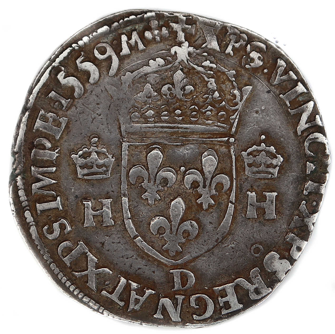 Lettre d'atelier : D Point secret : 12éme (au revers) Millésime : 1559 Chiffre de frappe connu : 3 519 ex (avec demi