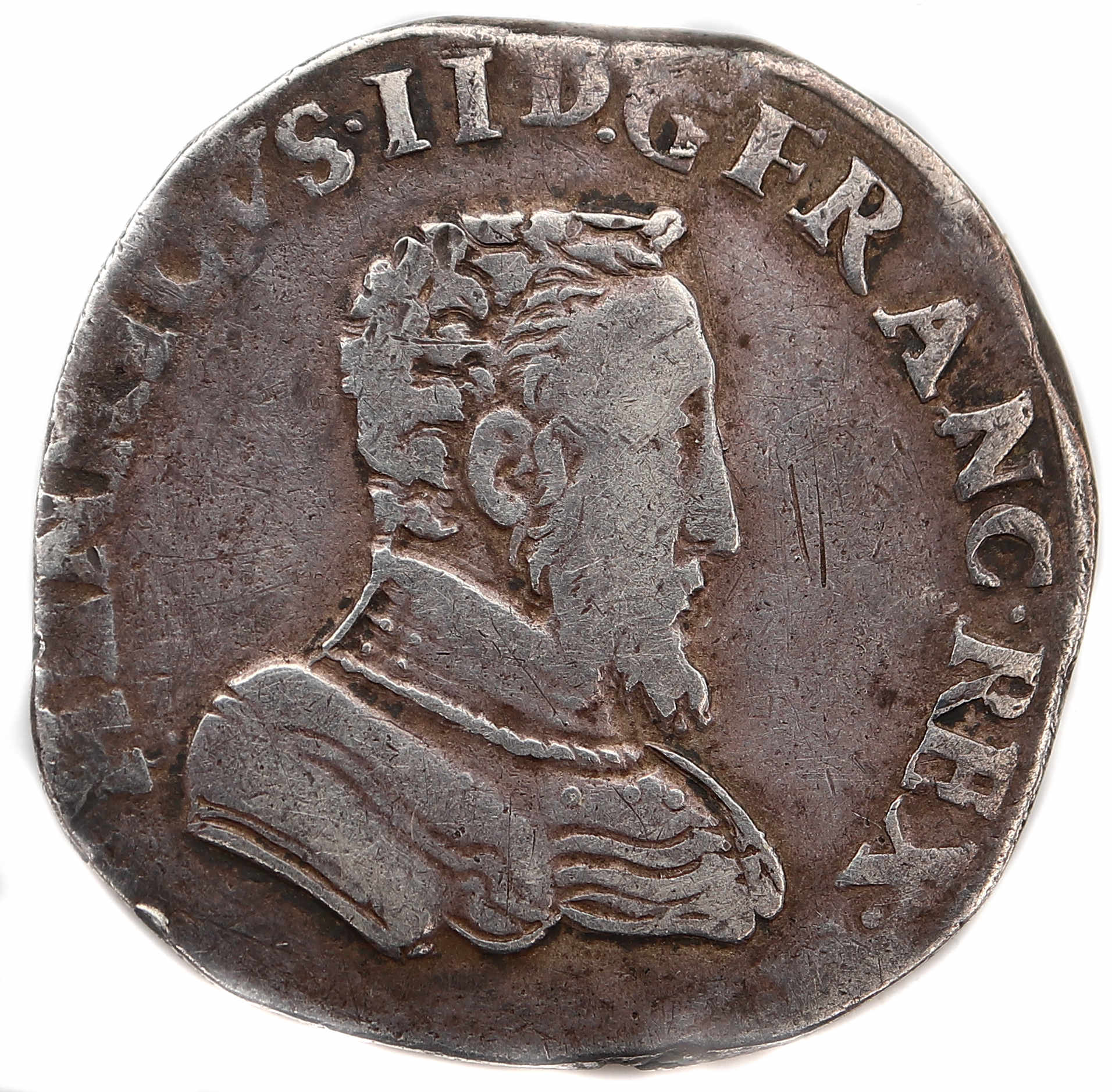HENRICVS.II.D.G.FRANC.REX. HENRI, par la grâce de Dieu, roi des Francs Buste du roi tête nue à droite avec cuirasse